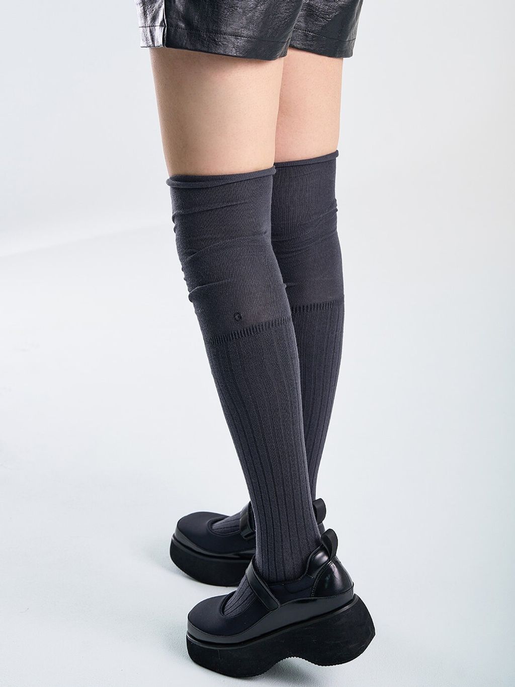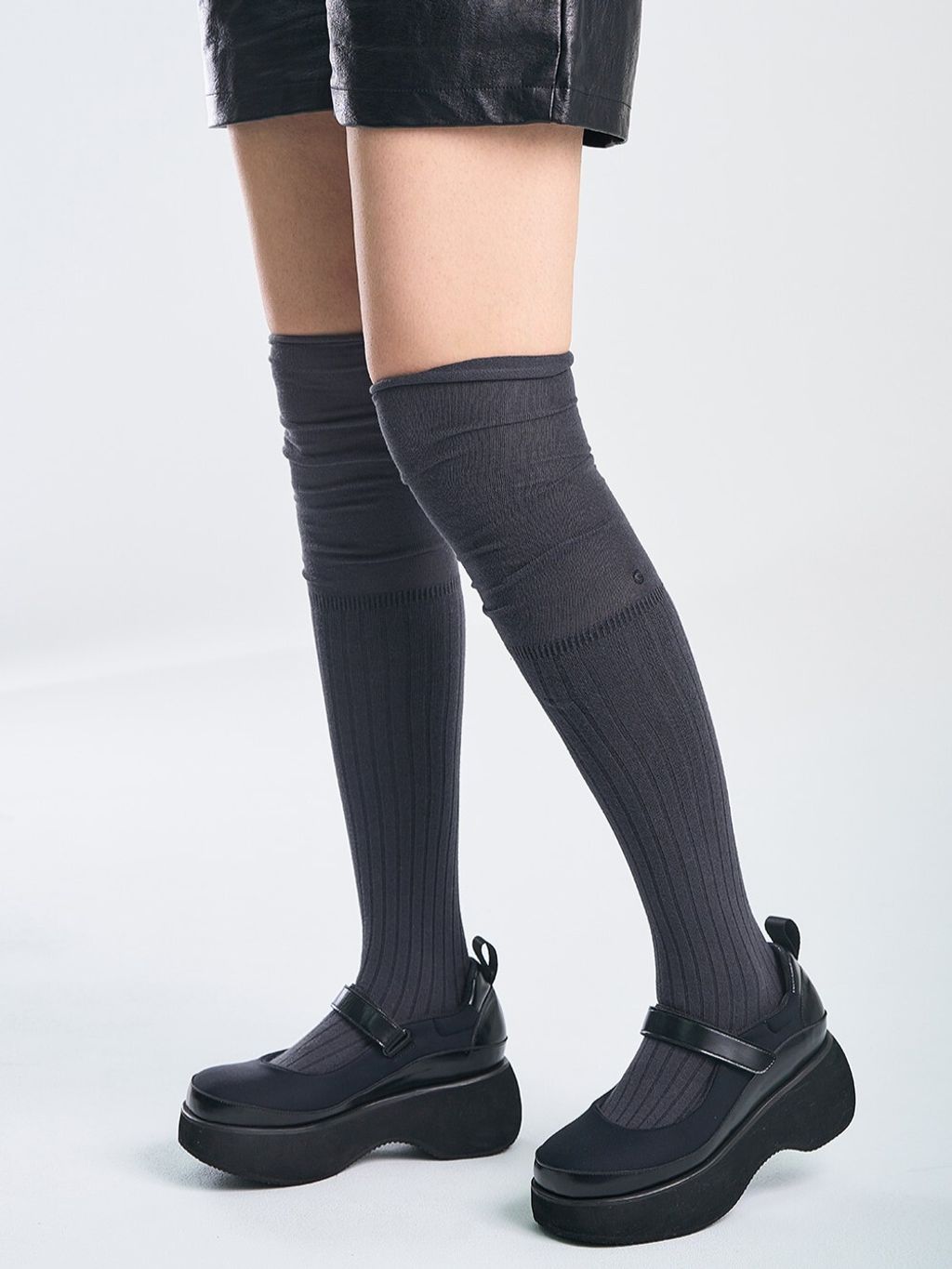 堆疊感坑條膝上襪 (4 colors)