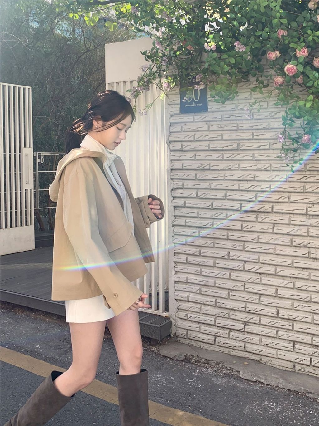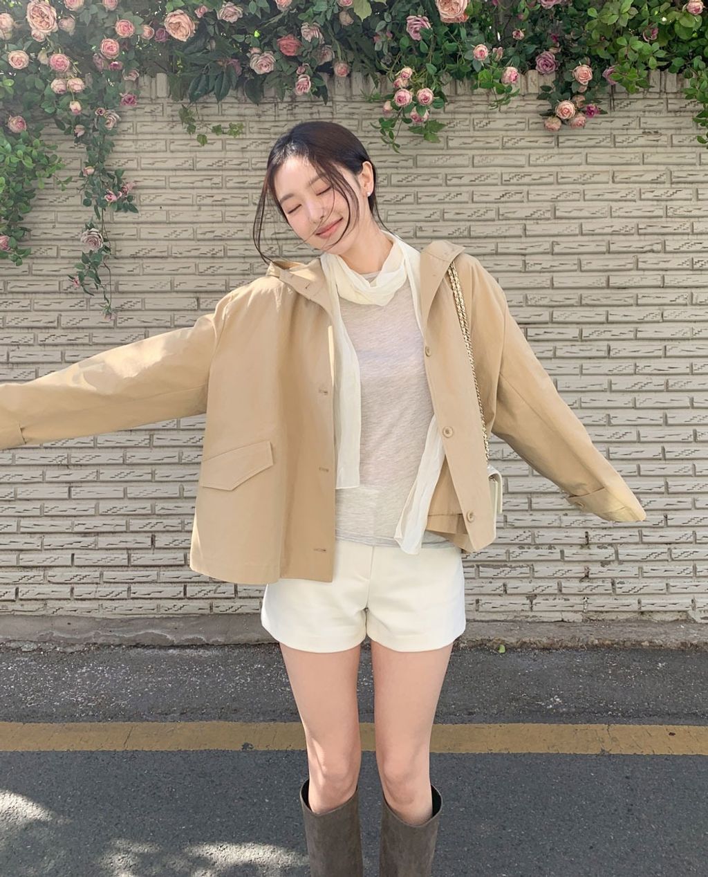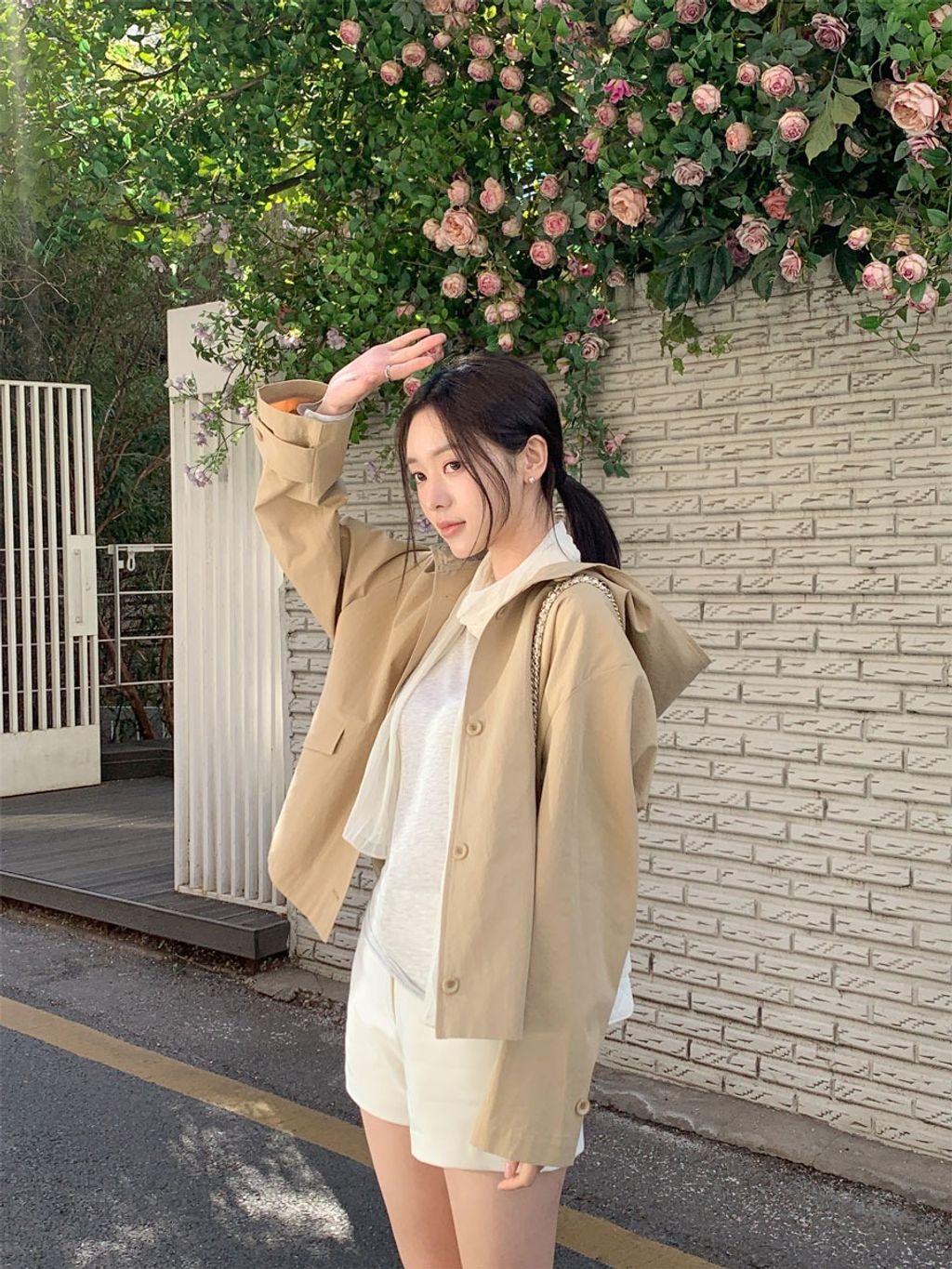 春日微風🌼斗篷感連帽短風衣