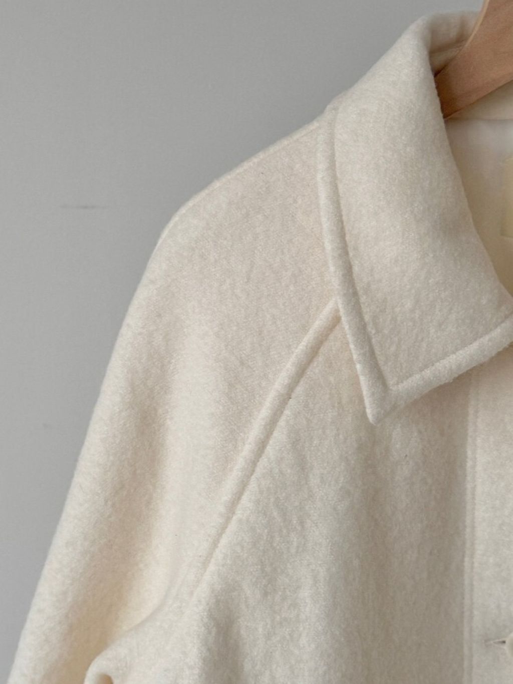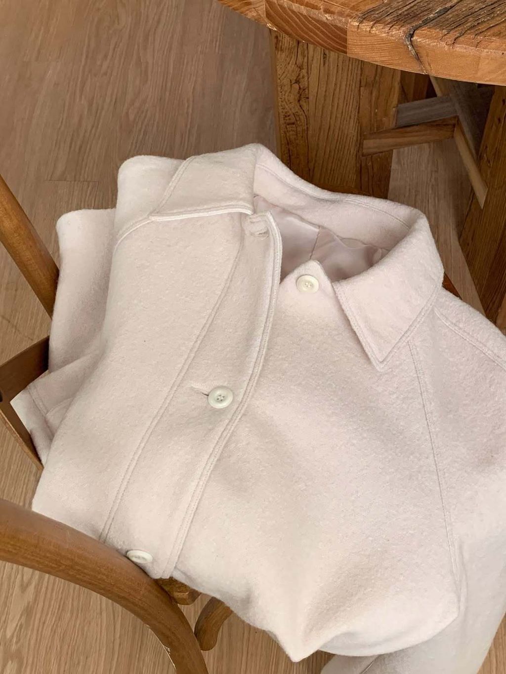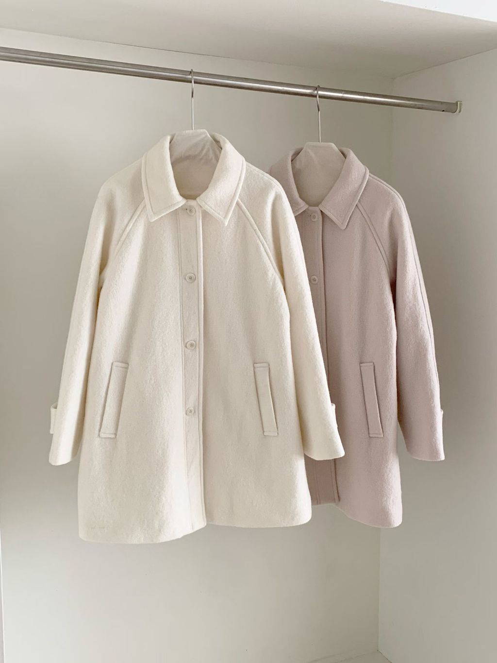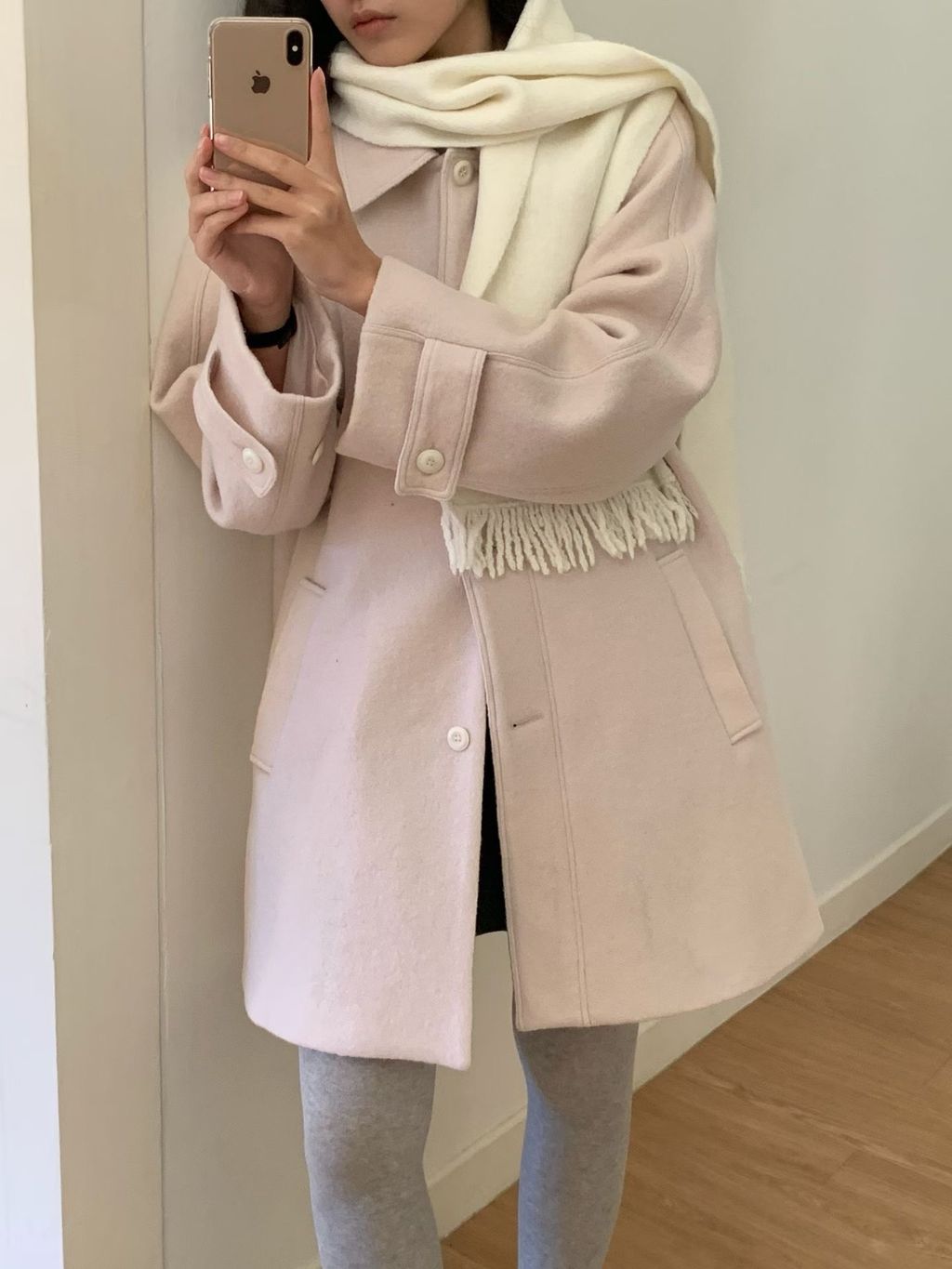 溫柔氣質翻領排釦羊毛長版外套 (Wool 80%)