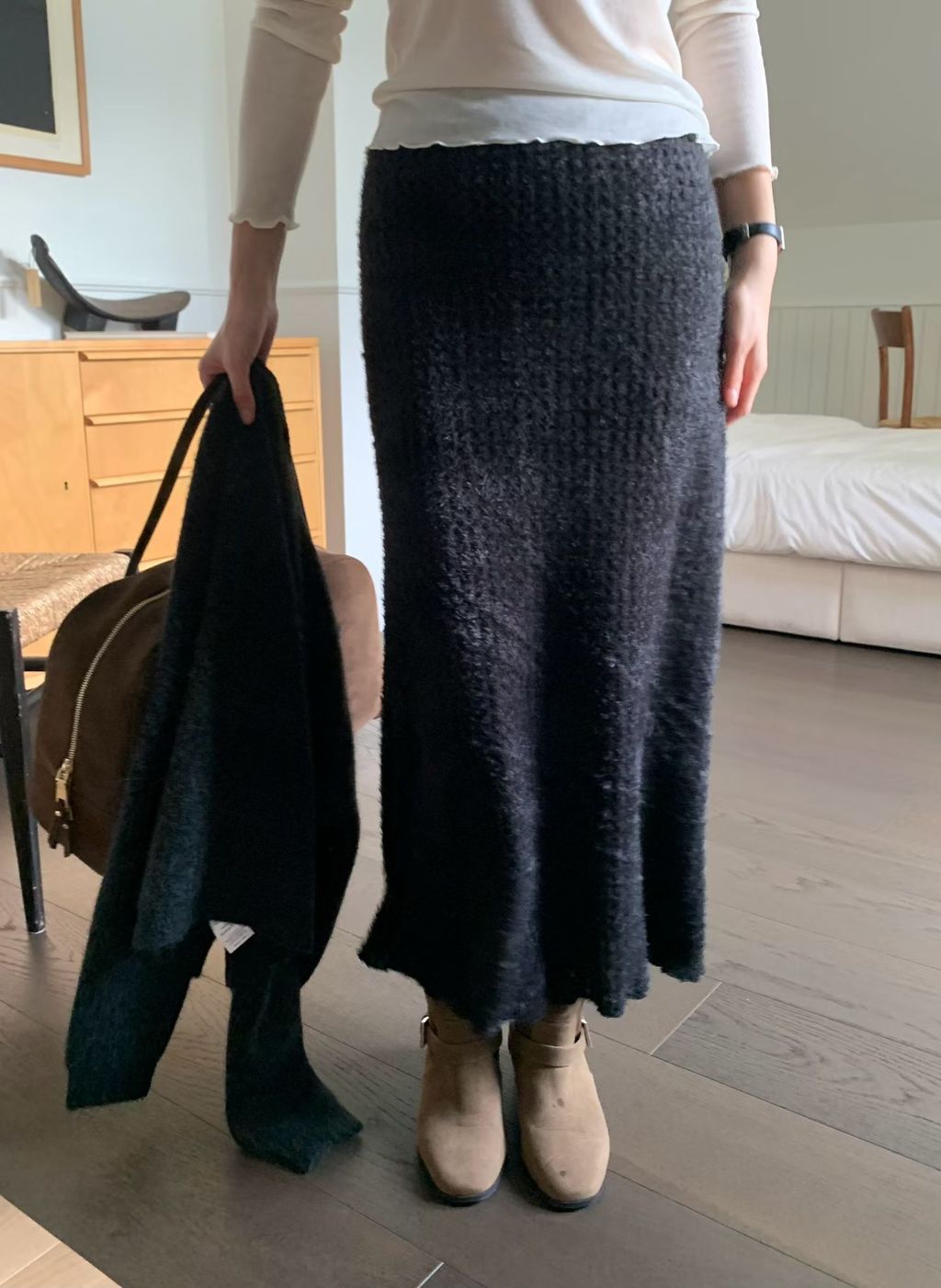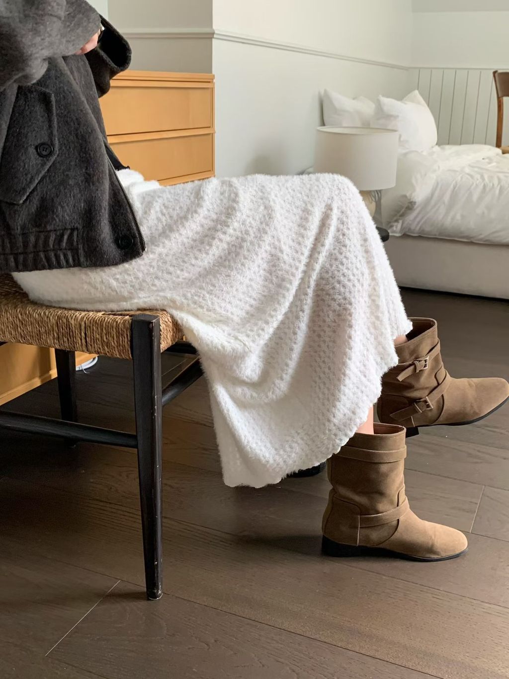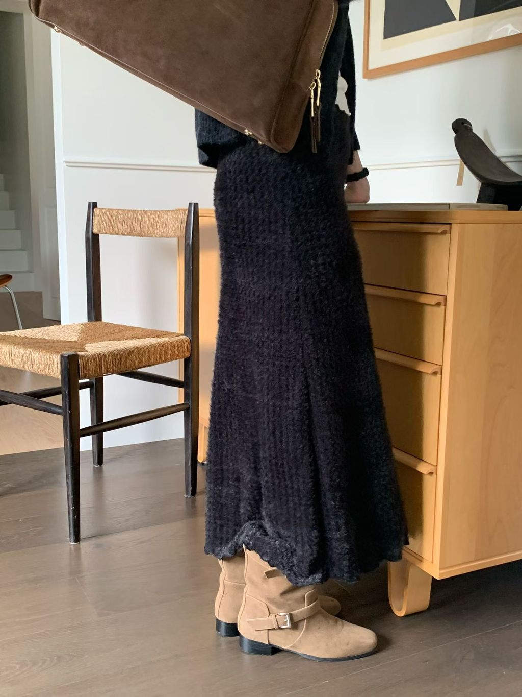 舒適軟綿☁️光澤毛絨捲邊長裙