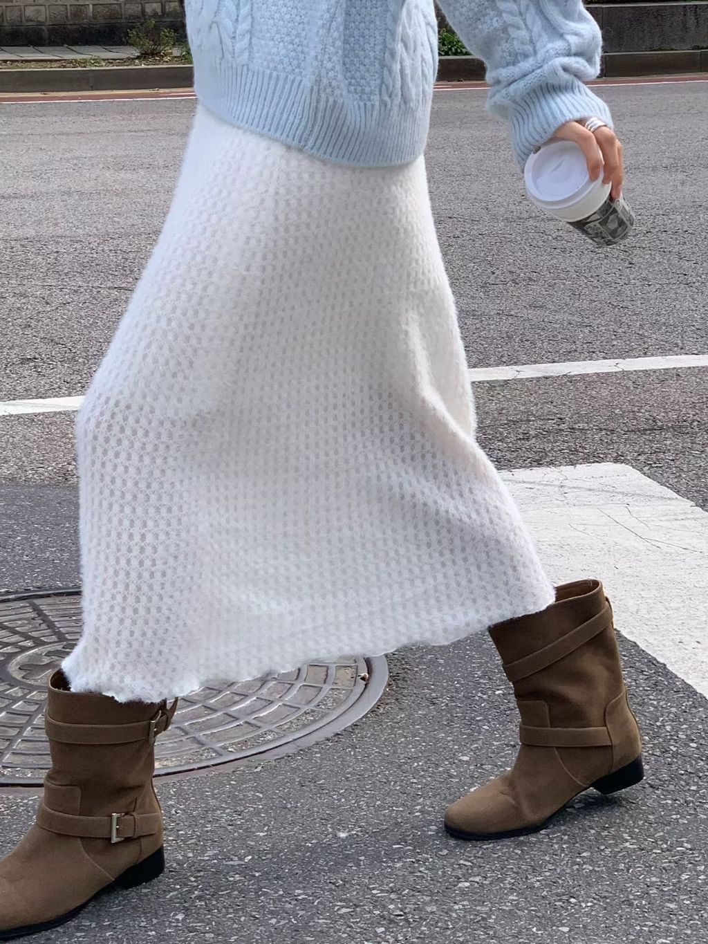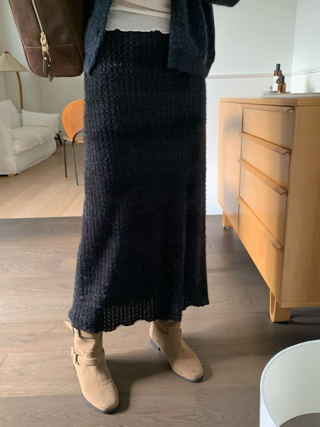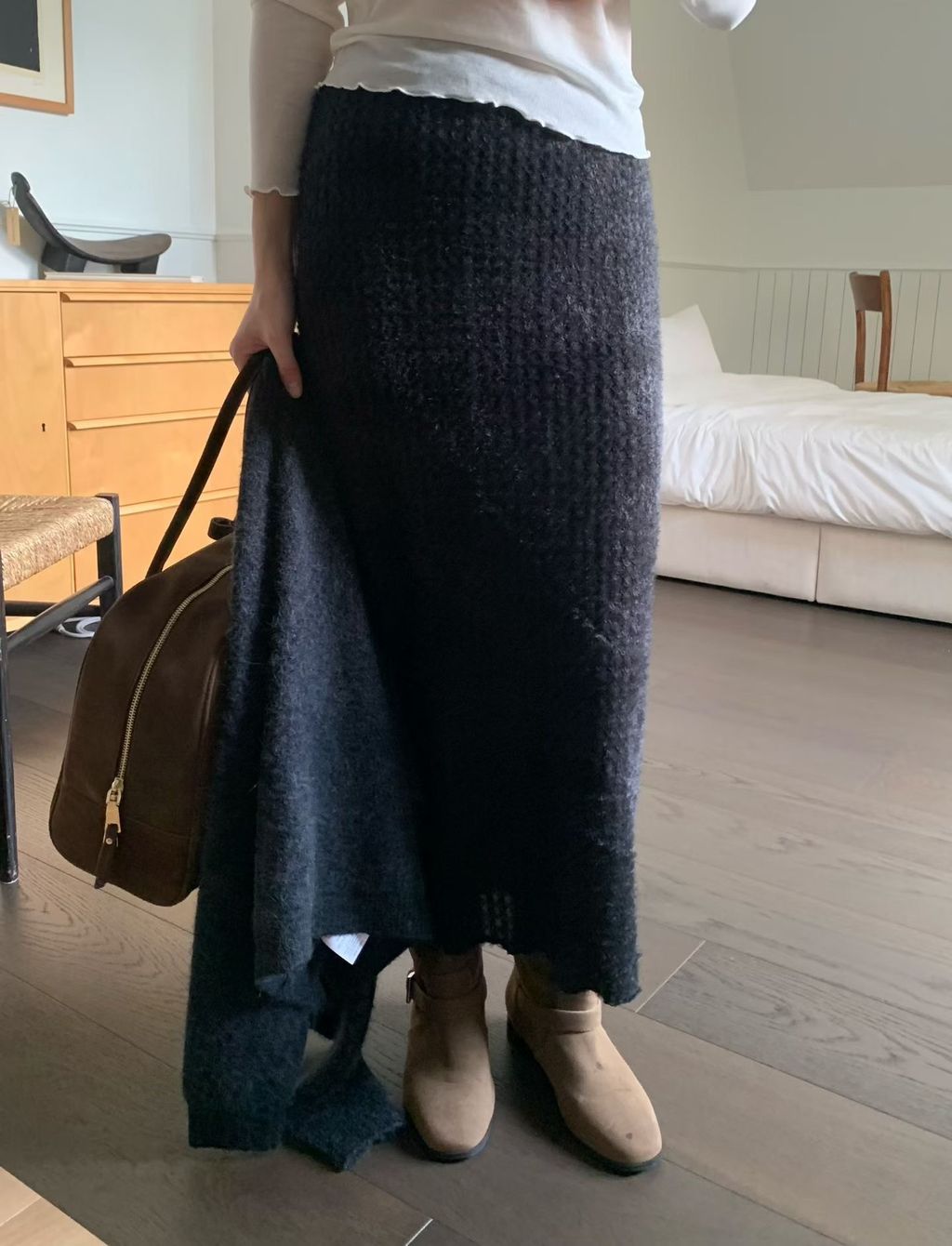 舒適軟綿☁️光澤毛絨捲邊長裙