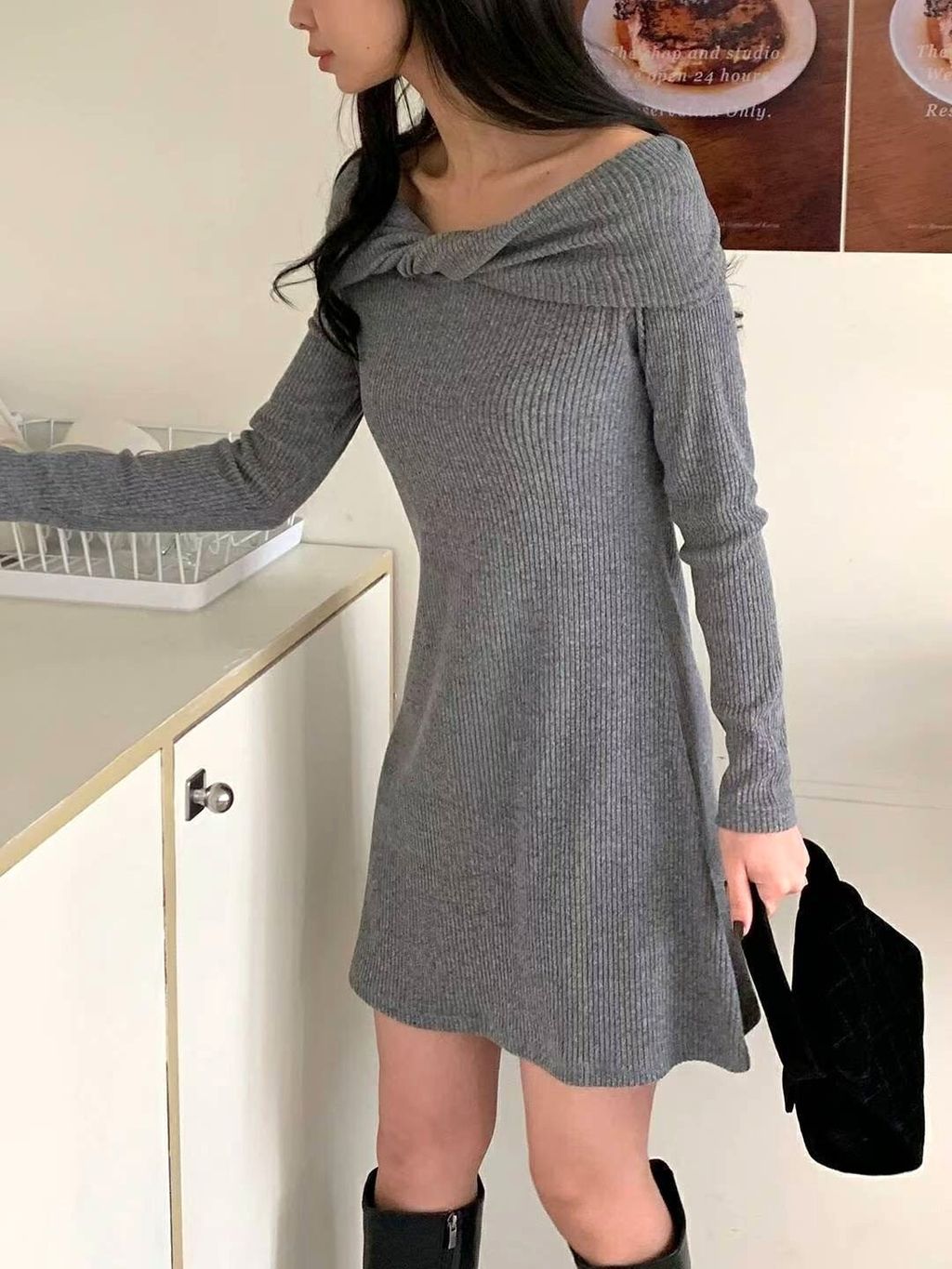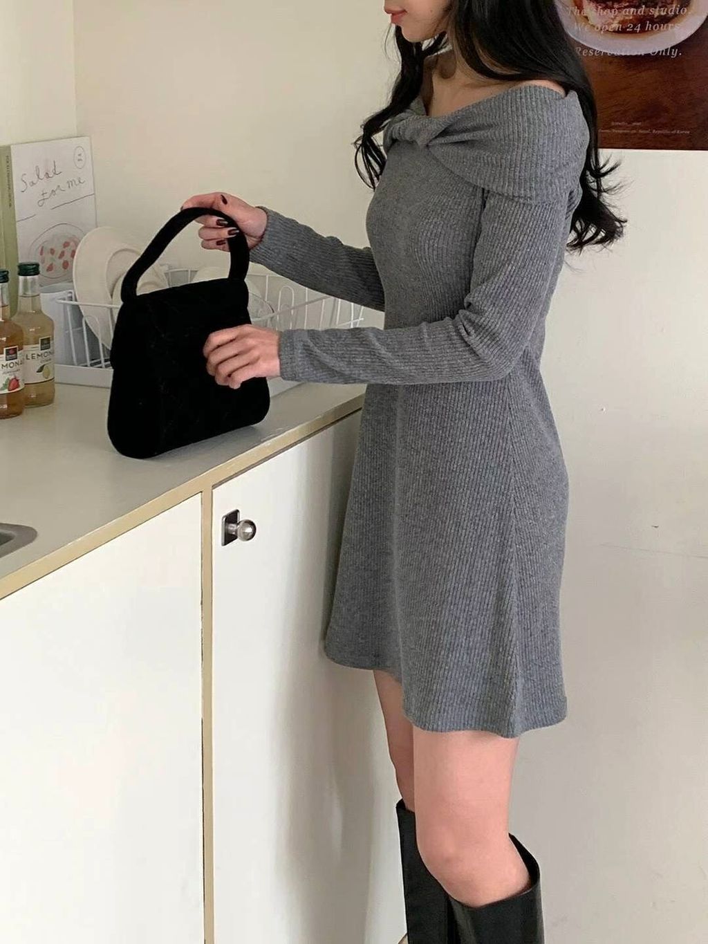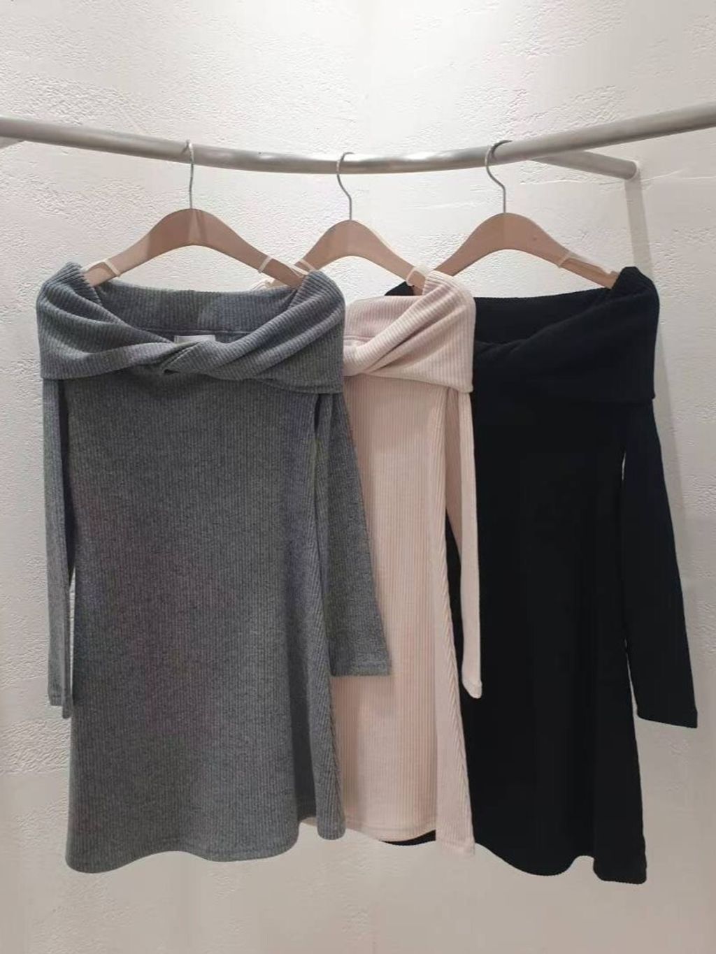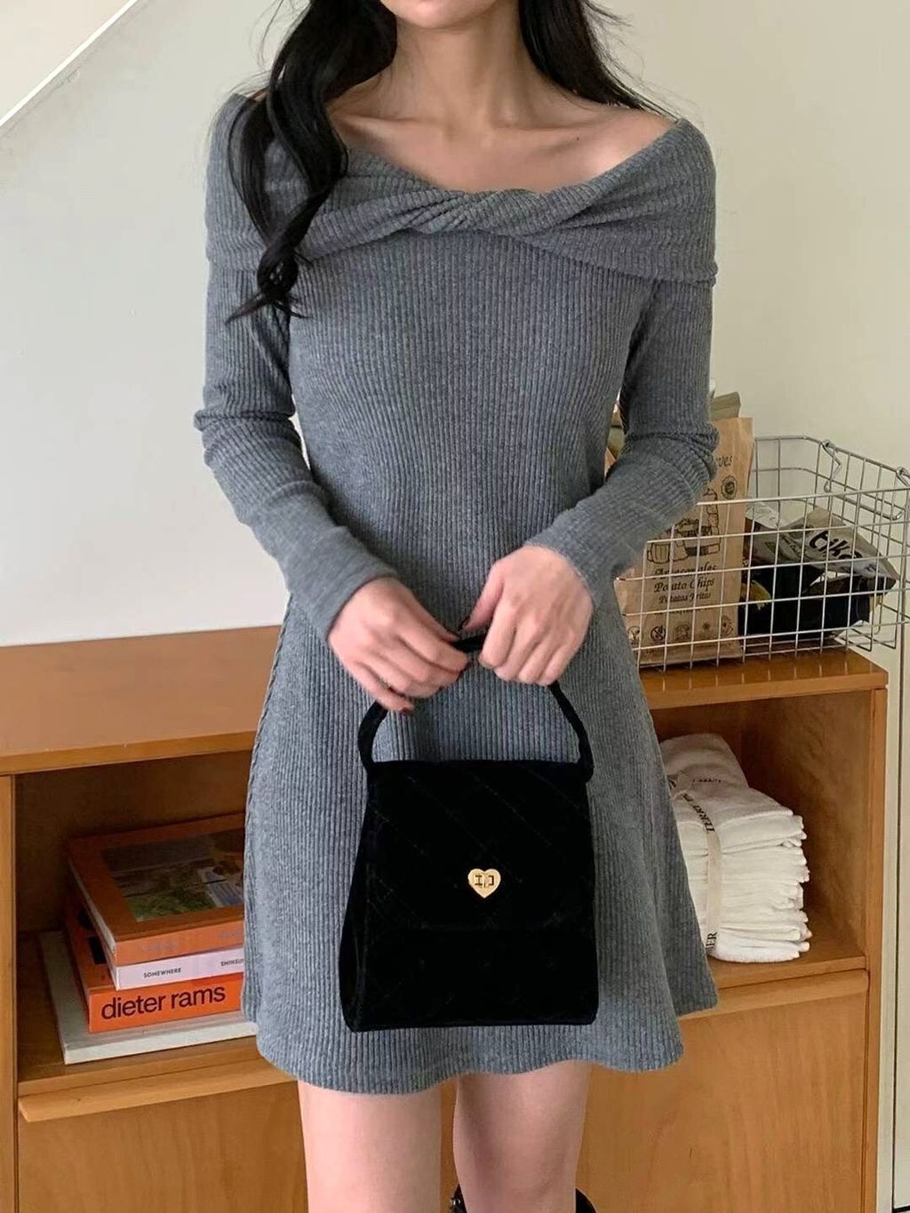 《 冬日約會 🥂》溫柔扭結平口傘擺短洋裝