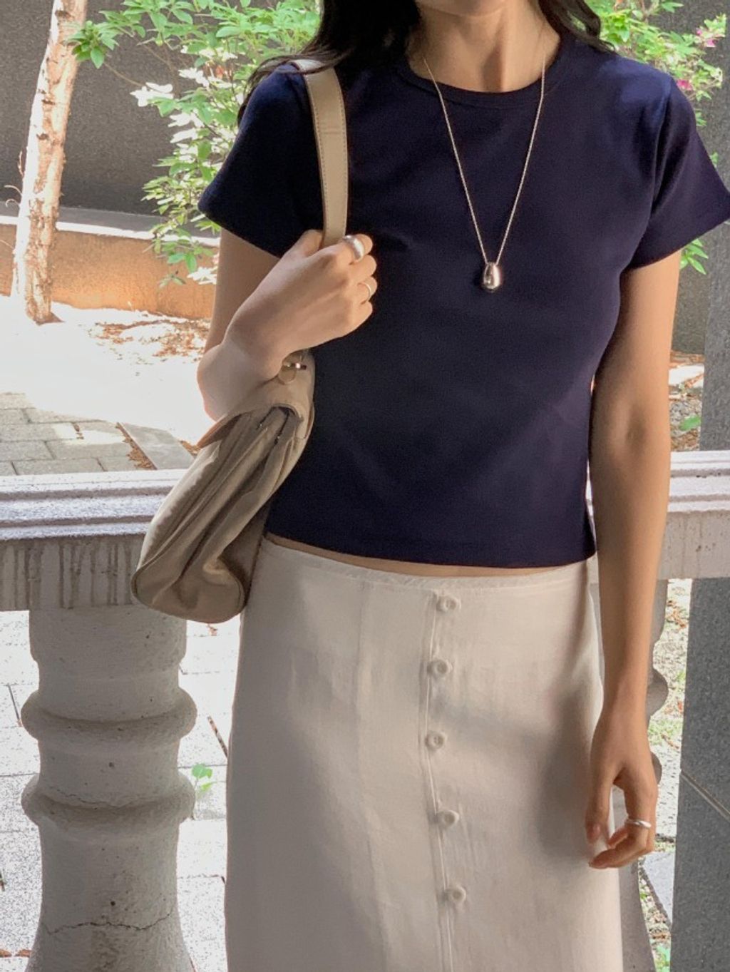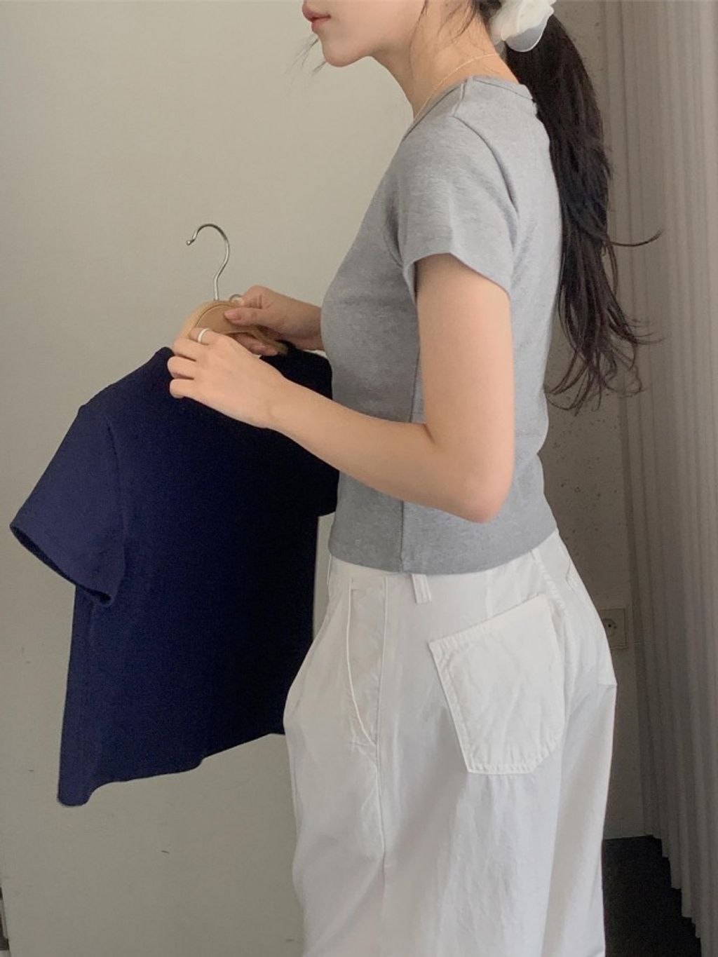 《 基礎舒適☁️ 》圓領腰身修飾Tee