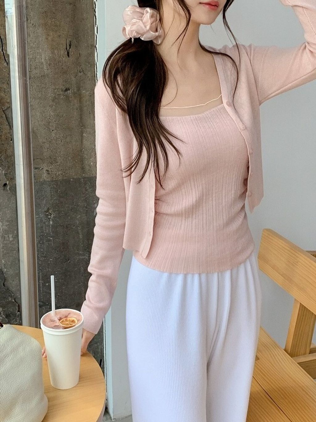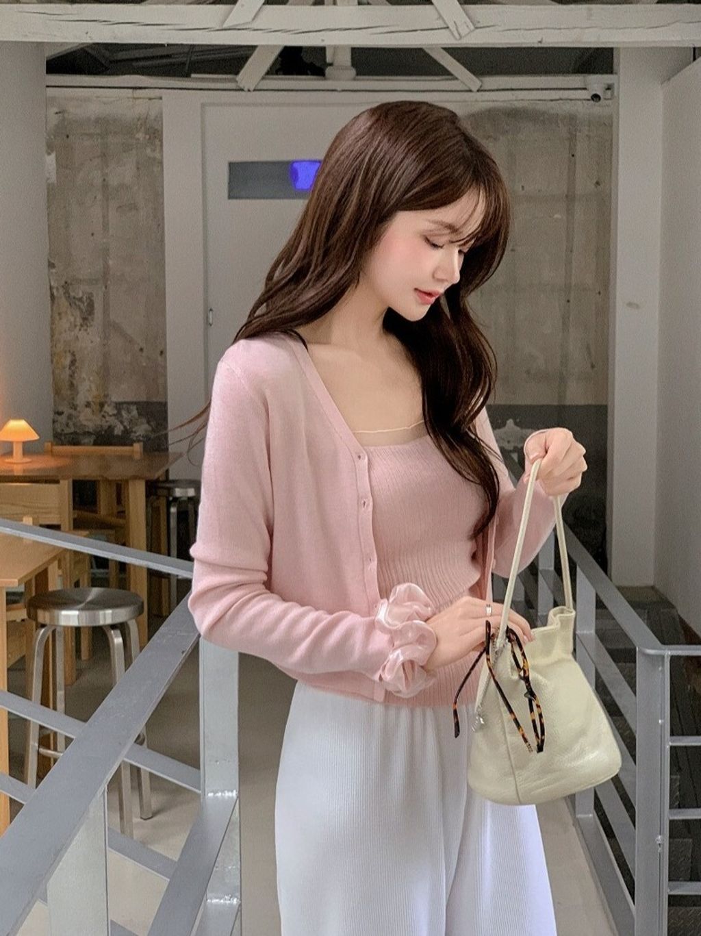 《 套裝Set🏷️ 》好感氣息🫧柔紗滾邊Bra背心/外套 套裝