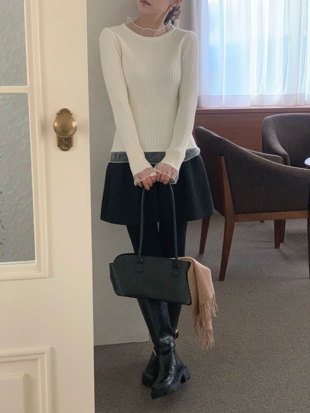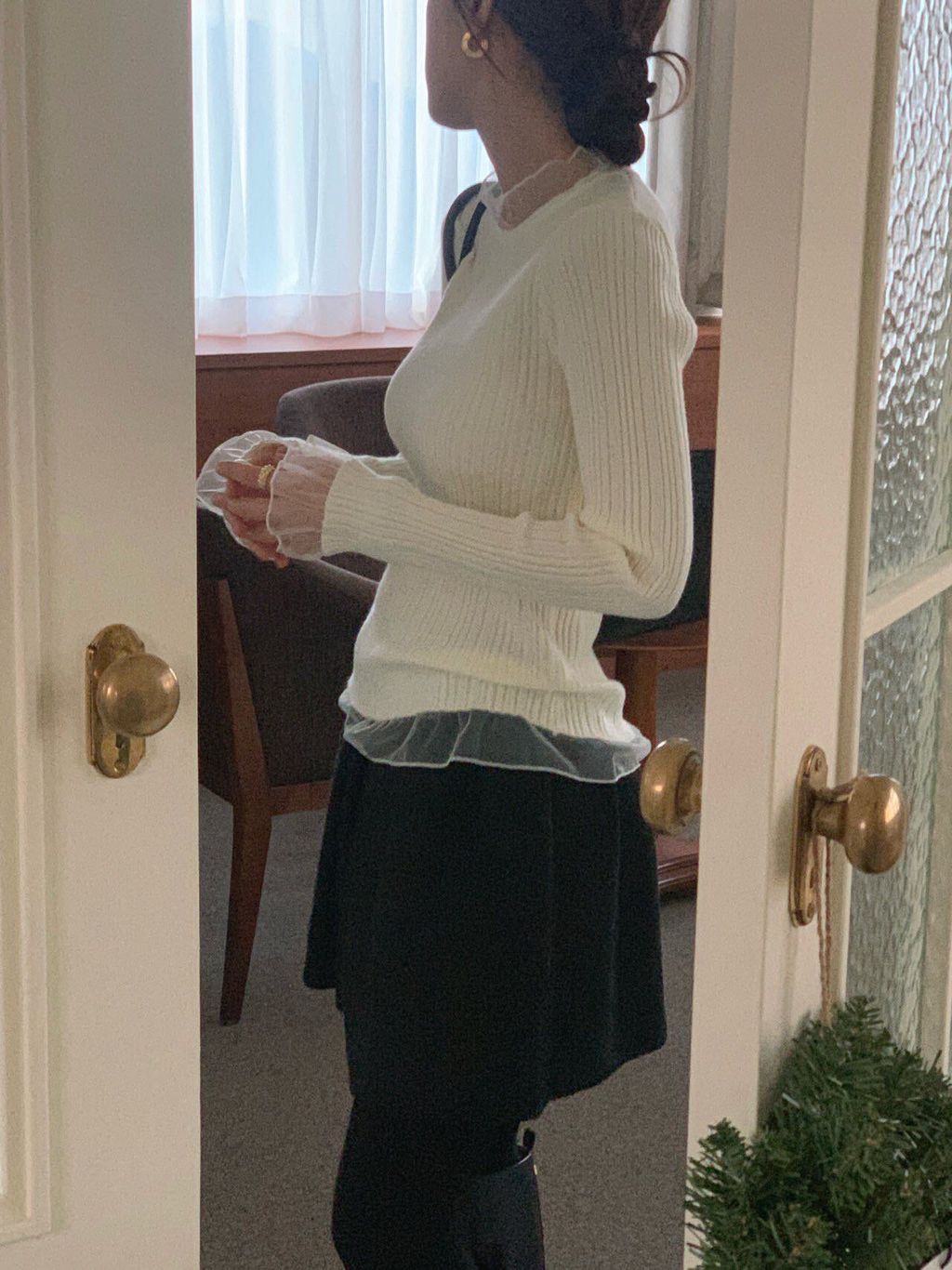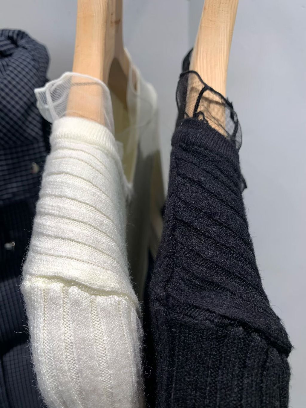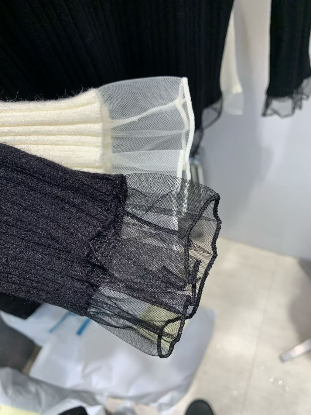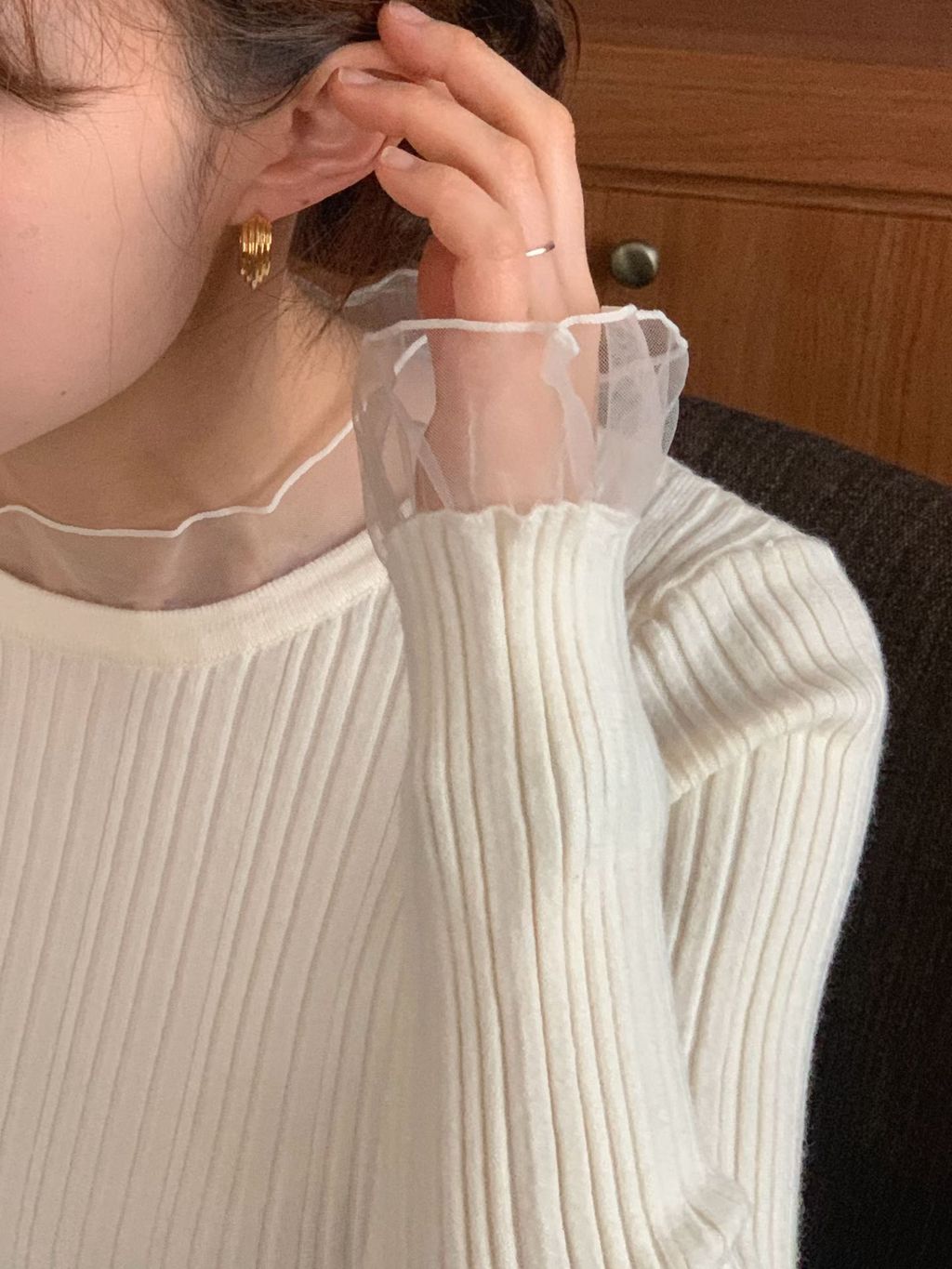 《 浪漫日常💕 》柔紗花邊直坑條針織衫