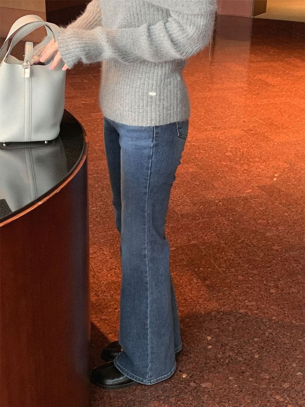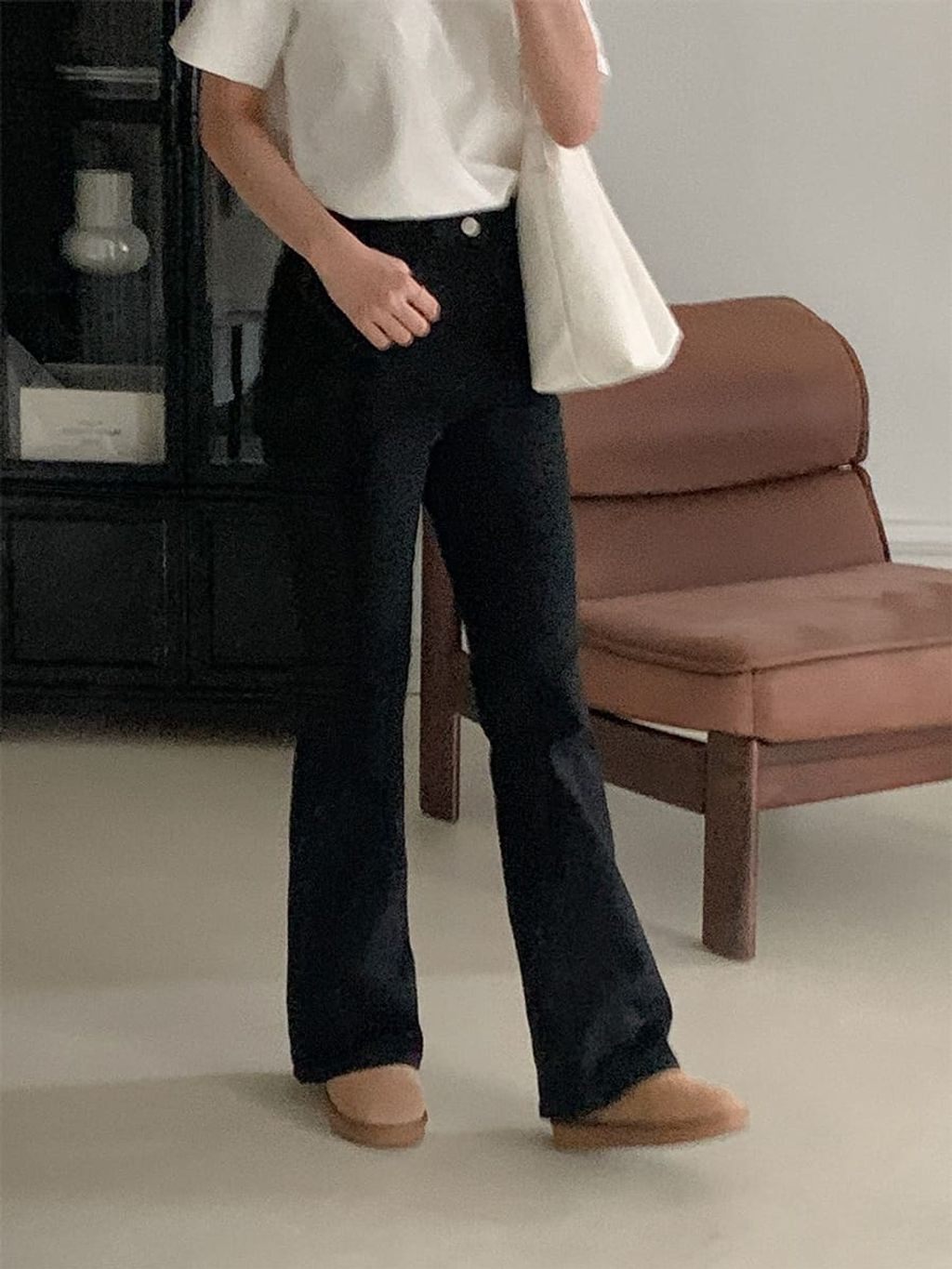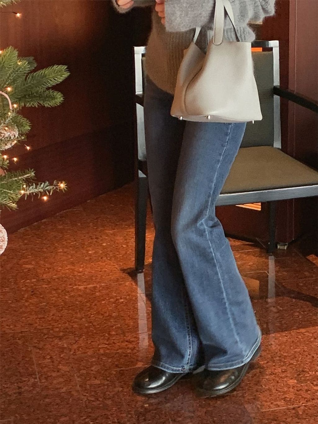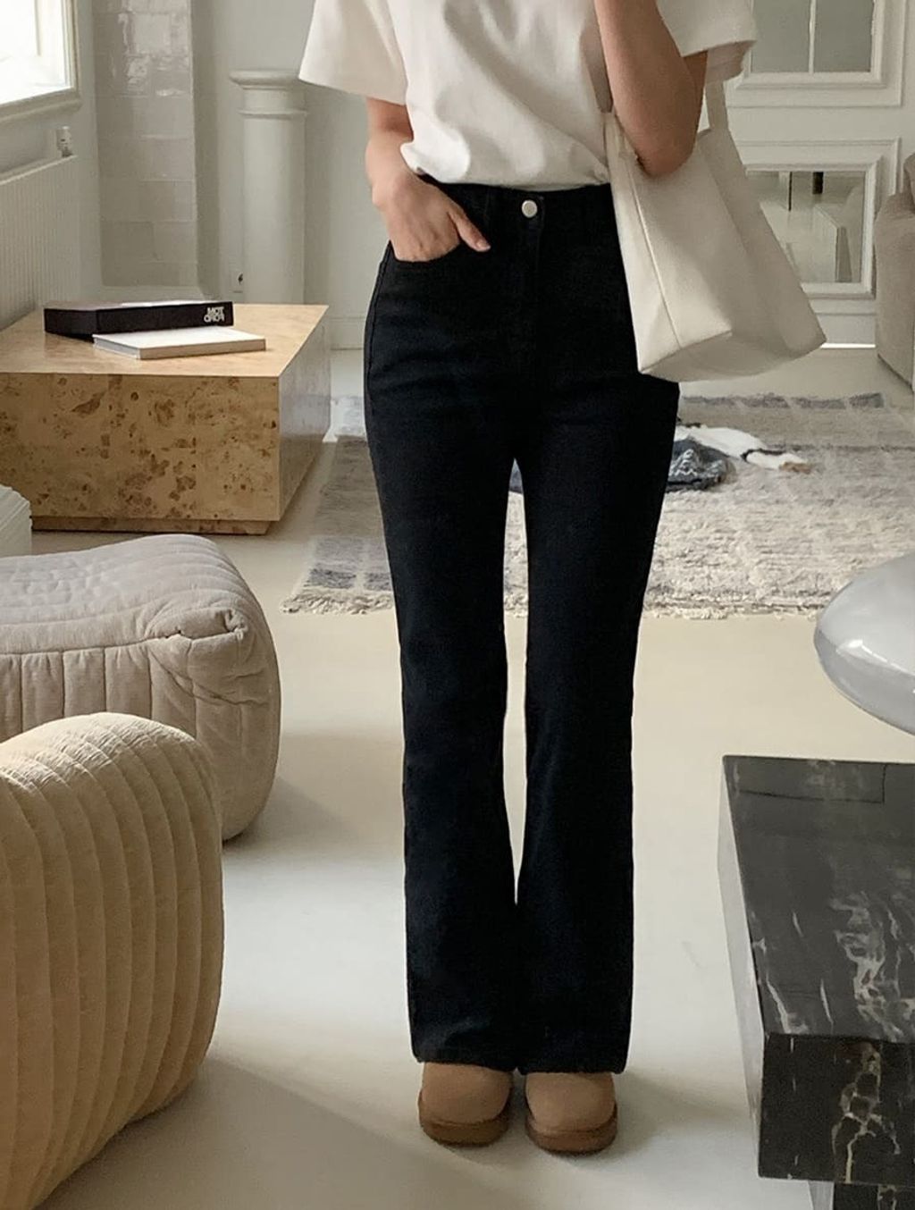 《 溫暖磨毛🔥 》修飾長腿彈性合身喇叭褲 - 丹寧/黑