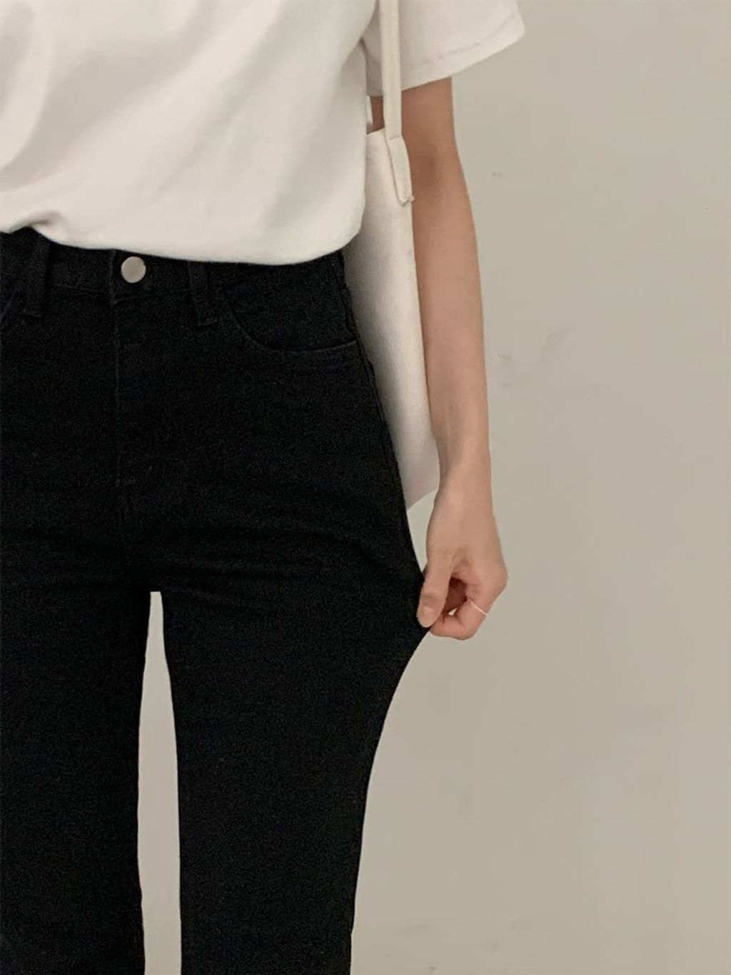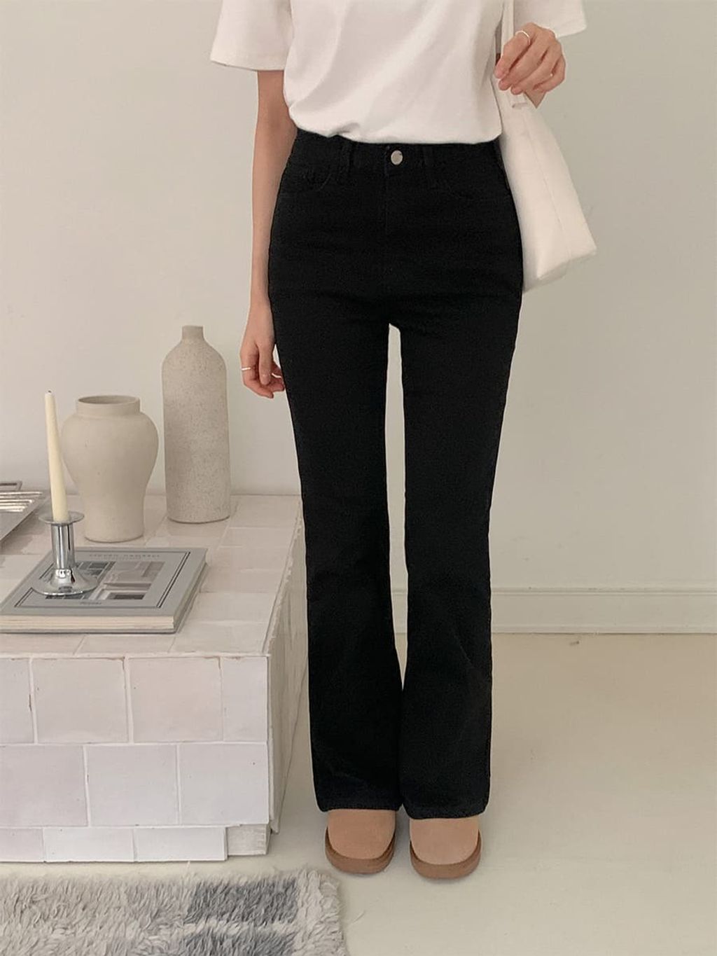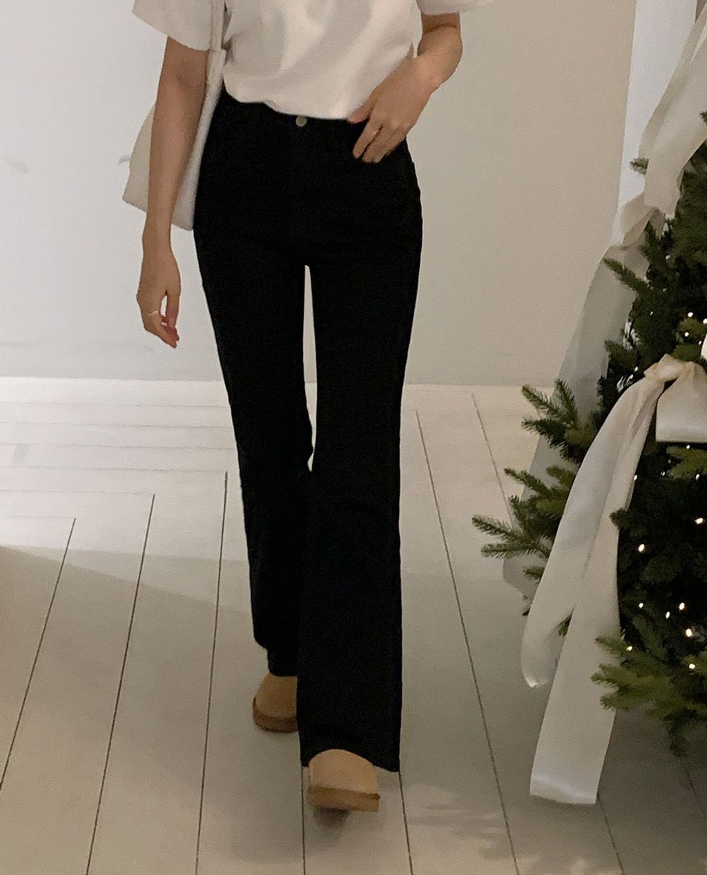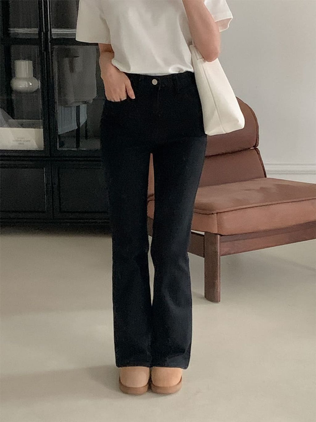 《 溫暖磨毛🔥 》修飾長腿彈性合身喇叭褲 - 丹寧/黑