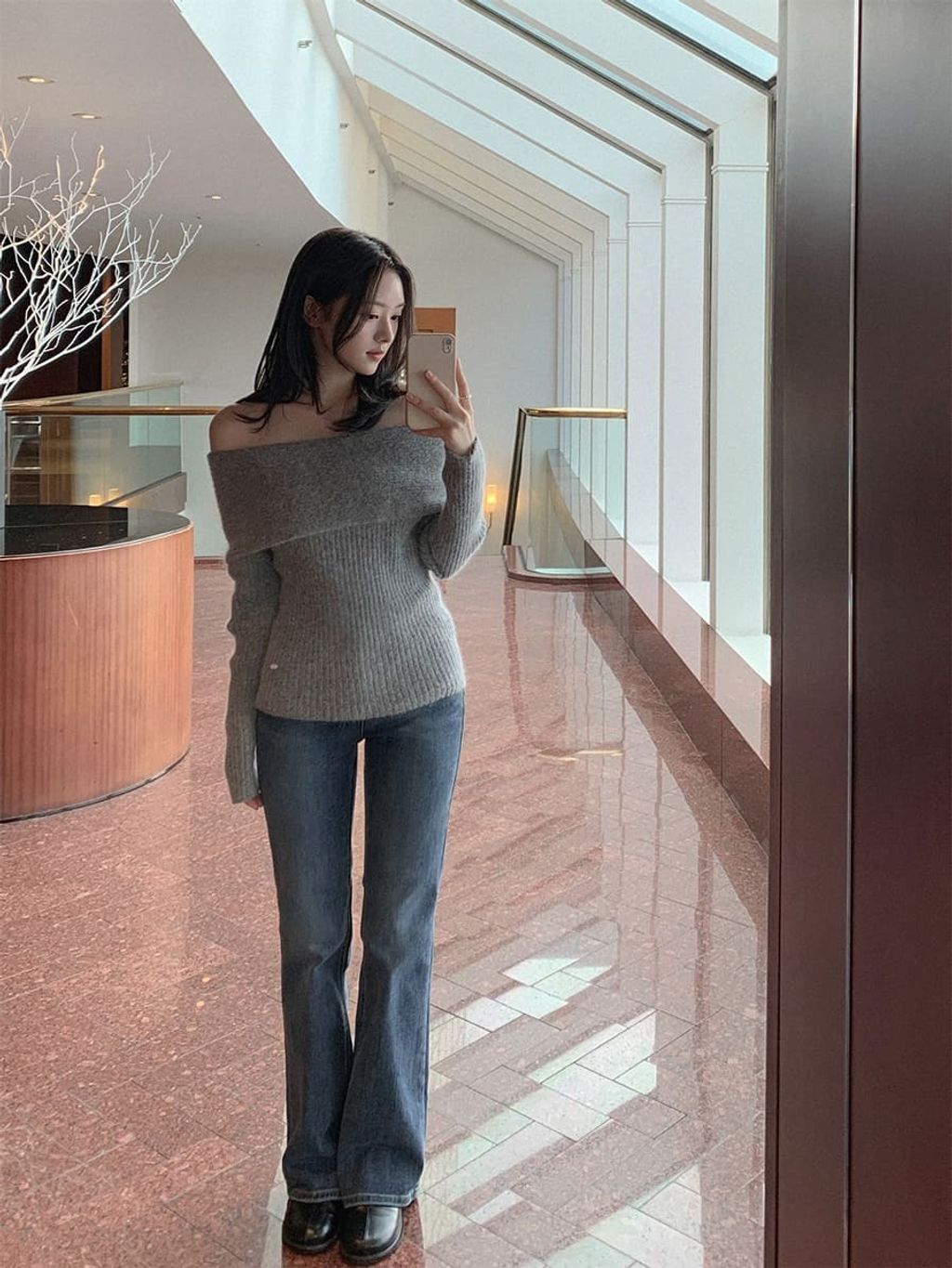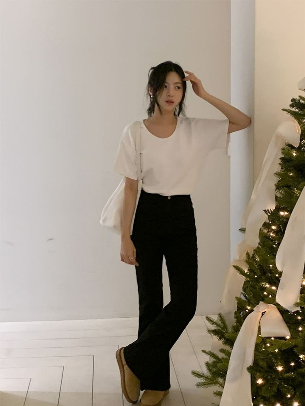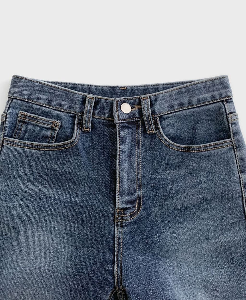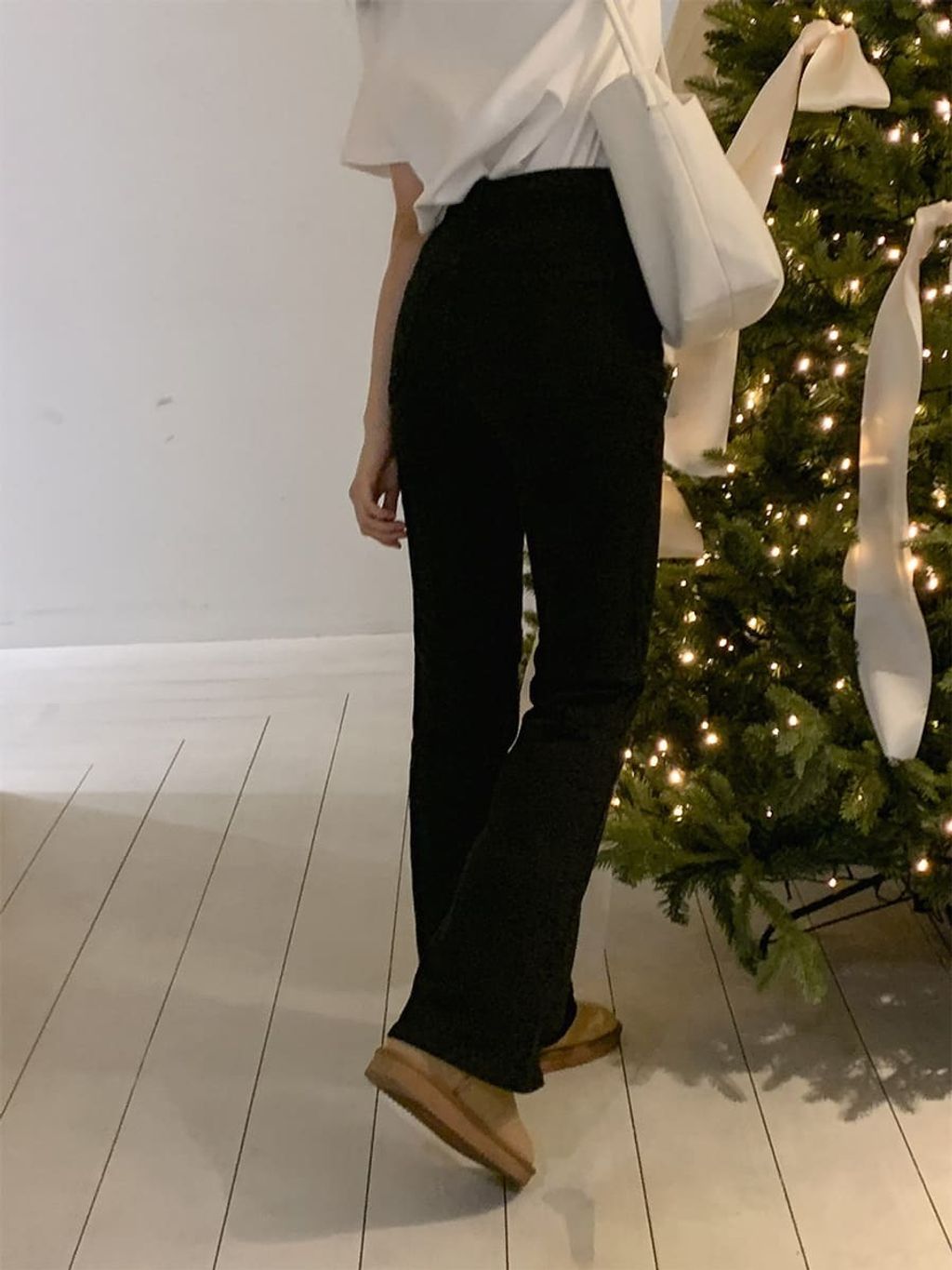 《 溫暖磨毛🔥 》修飾長腿彈性合身喇叭褲 - 丹寧/黑