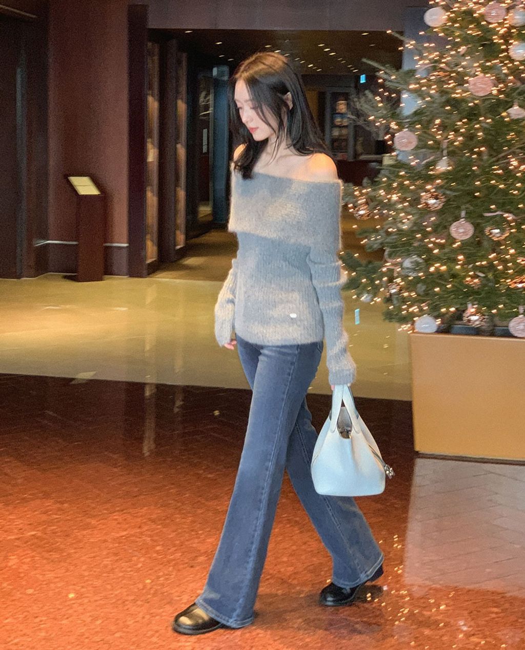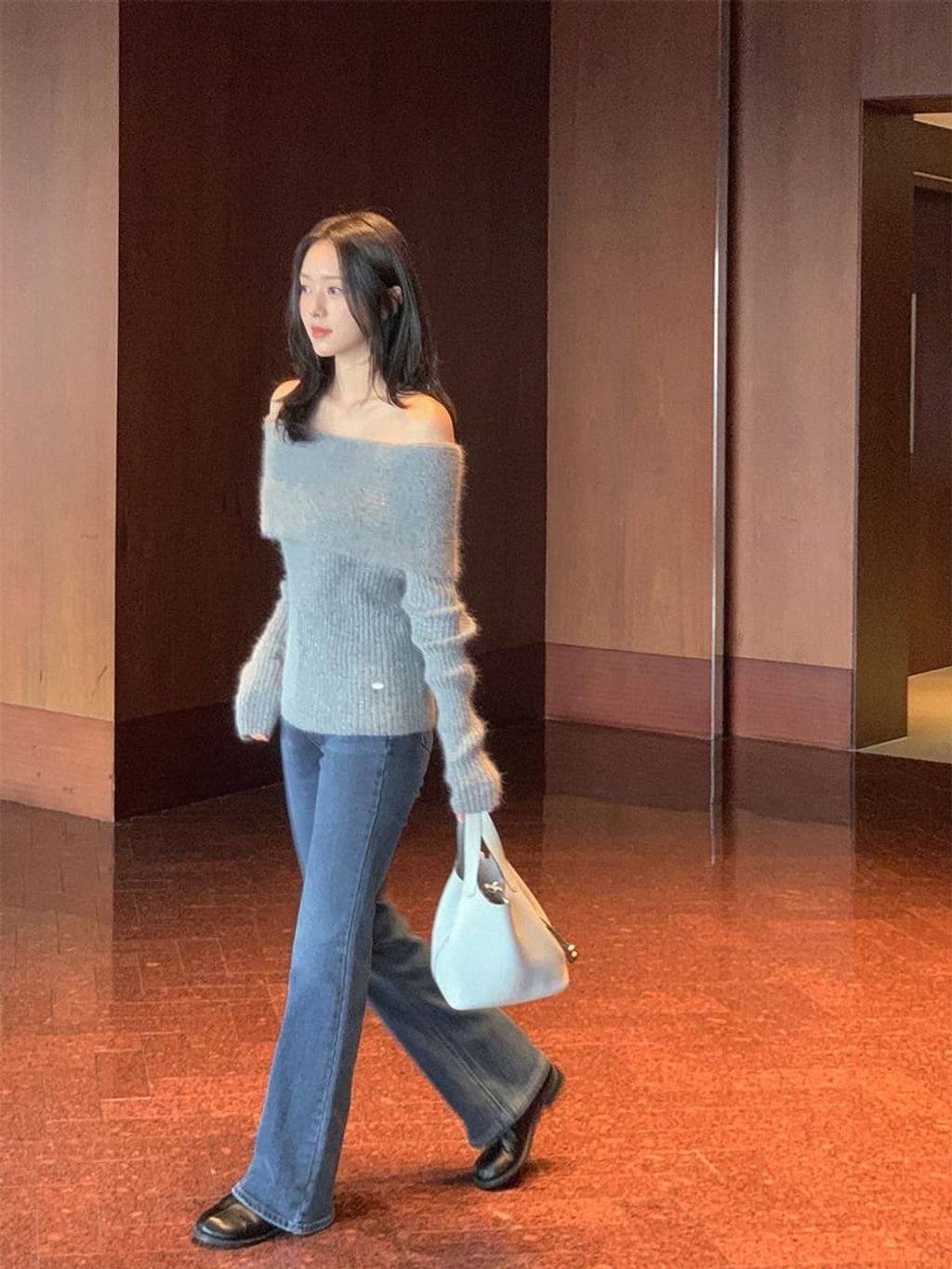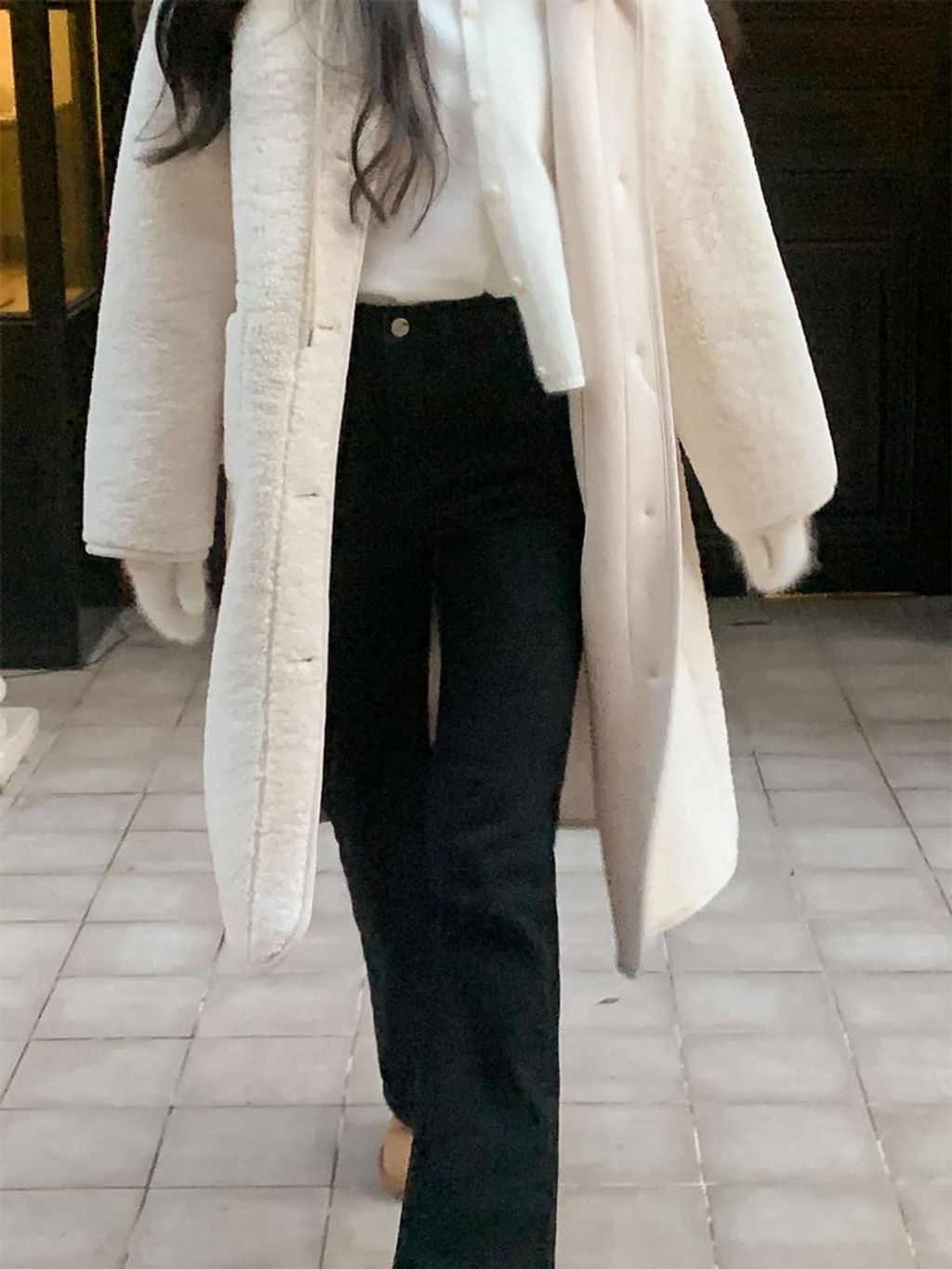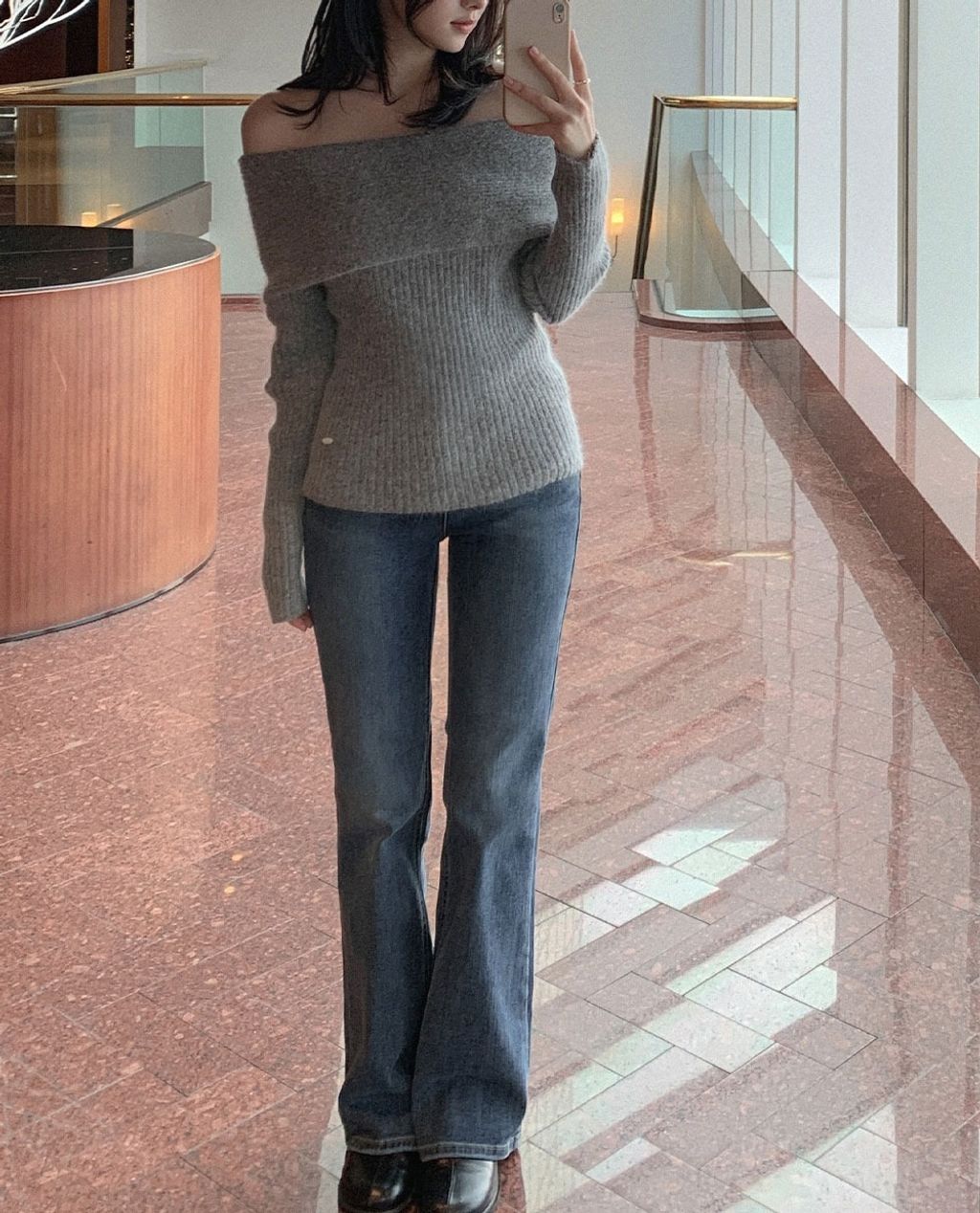 《 溫暖磨毛🔥 》修飾長腿彈性合身喇叭褲 - 丹寧/黑