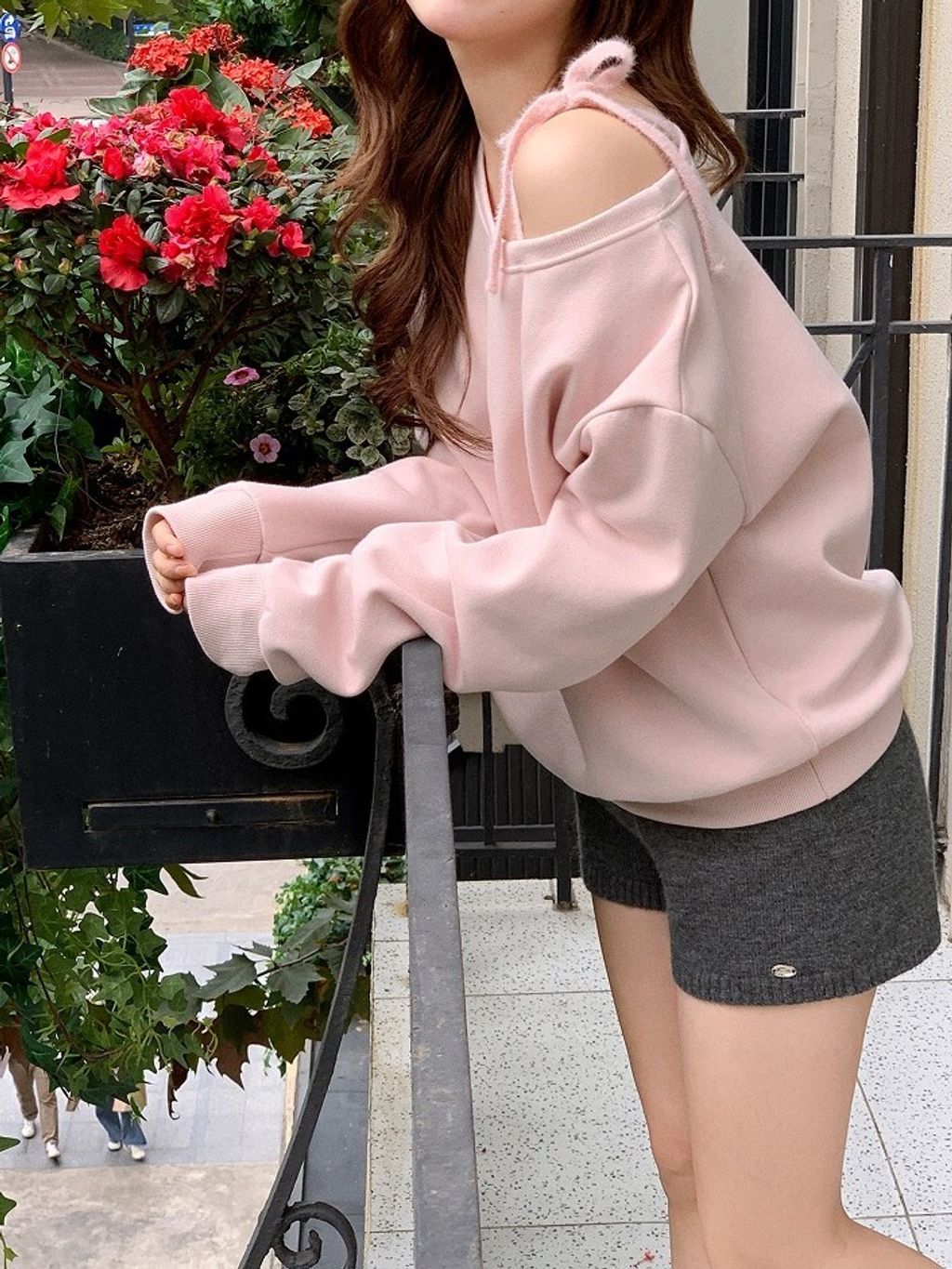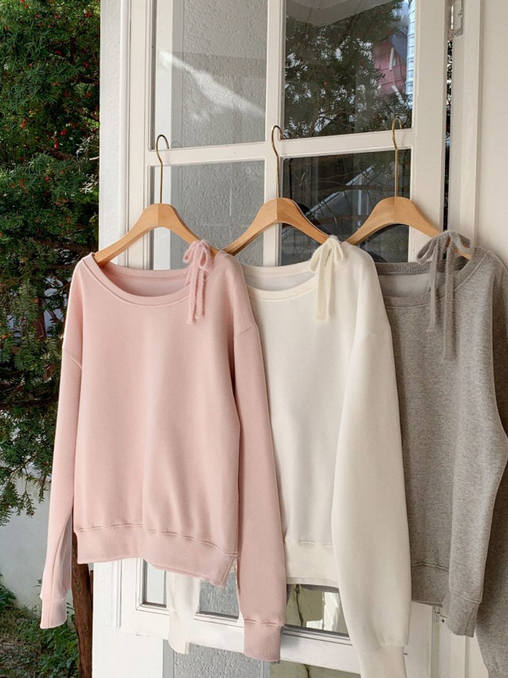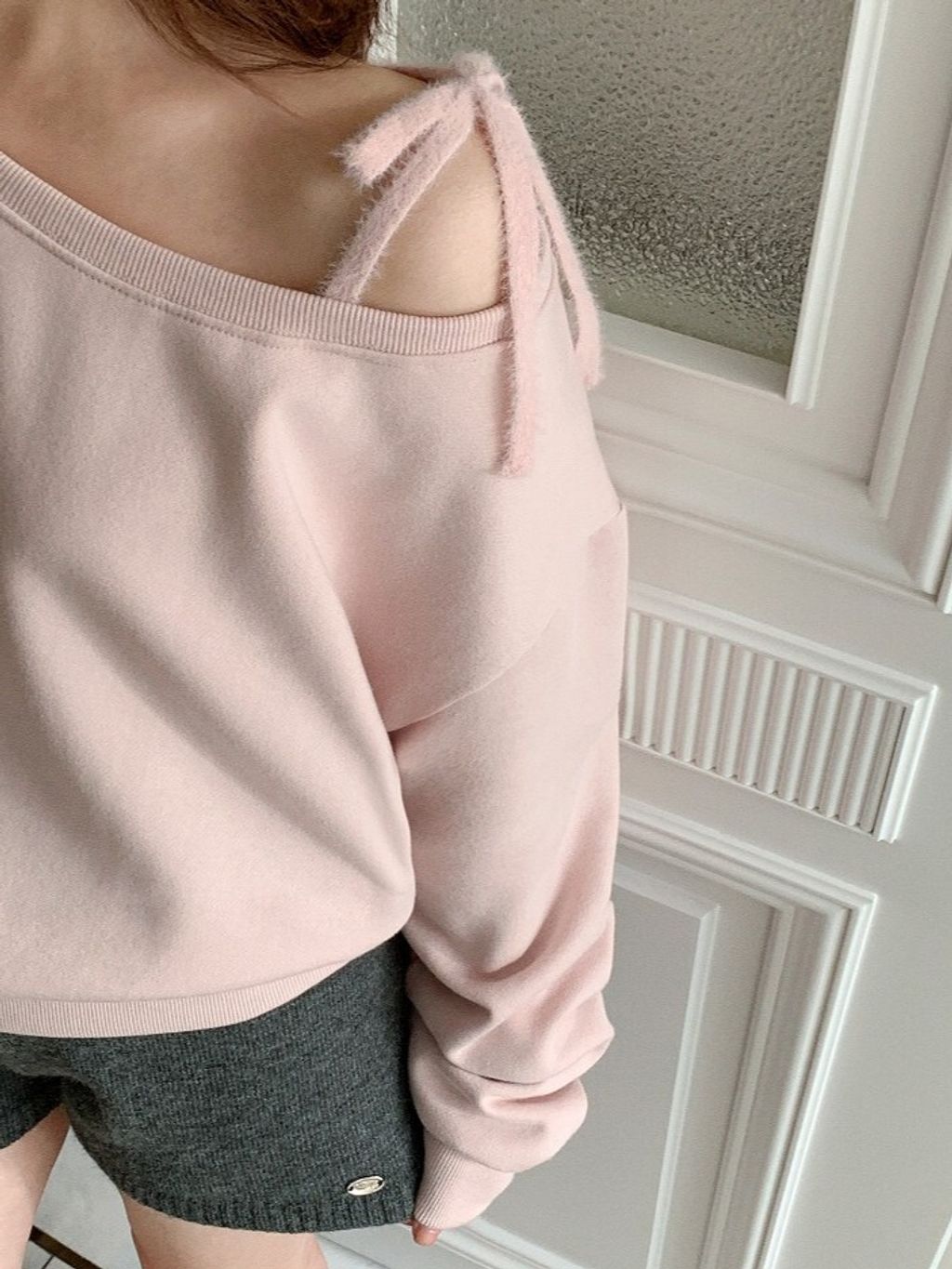 《 溫柔心動🤍 》毛針織肩綁帶內刷毛上衣