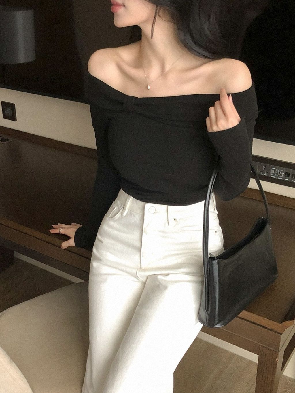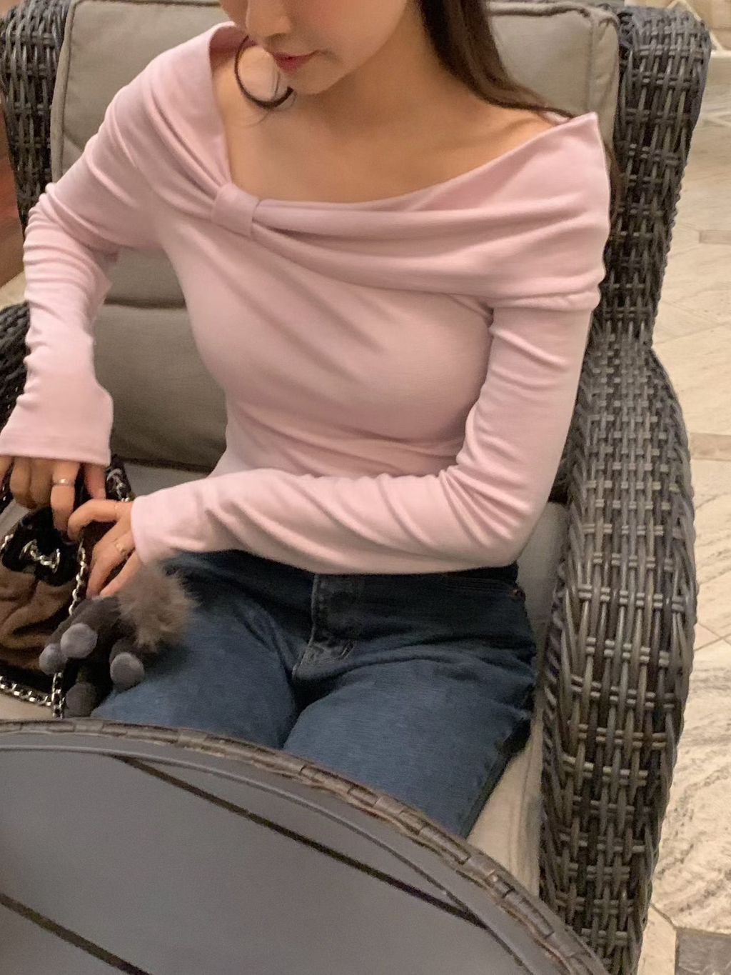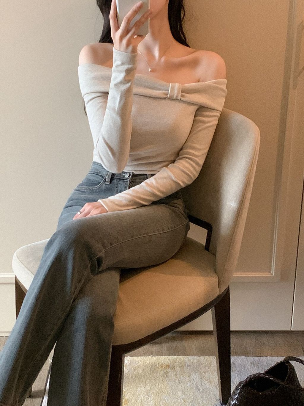《 設計師款 》柔美漂亮✨蝴蝶結包肩平口上衣