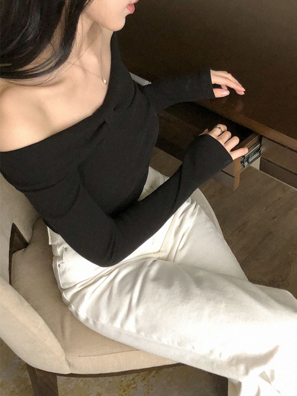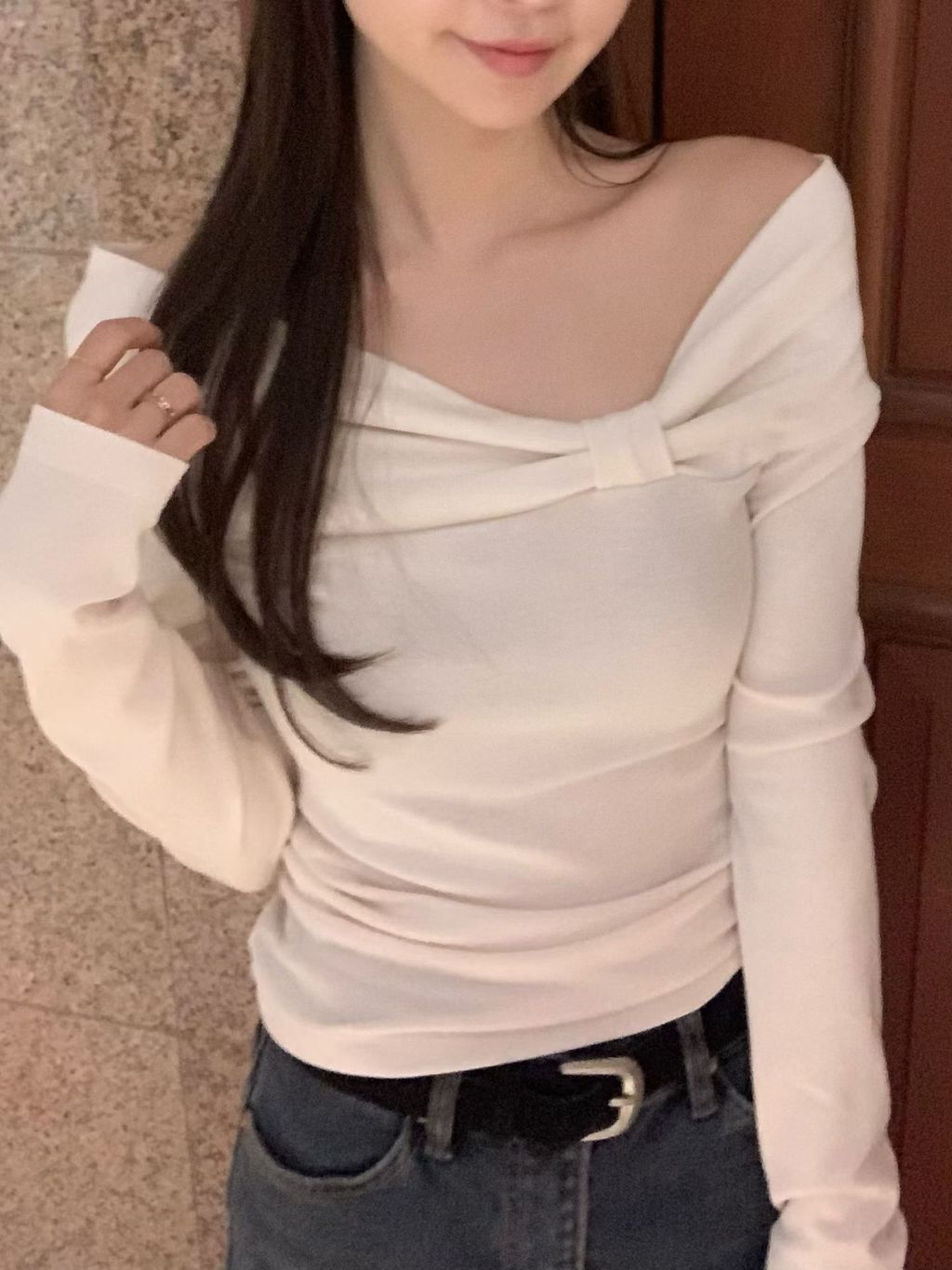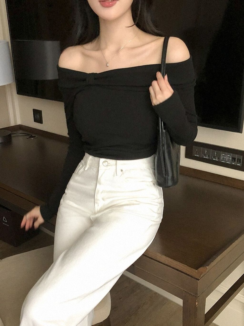 《 設計師款 》柔美漂亮✨蝴蝶結包肩平口上衣