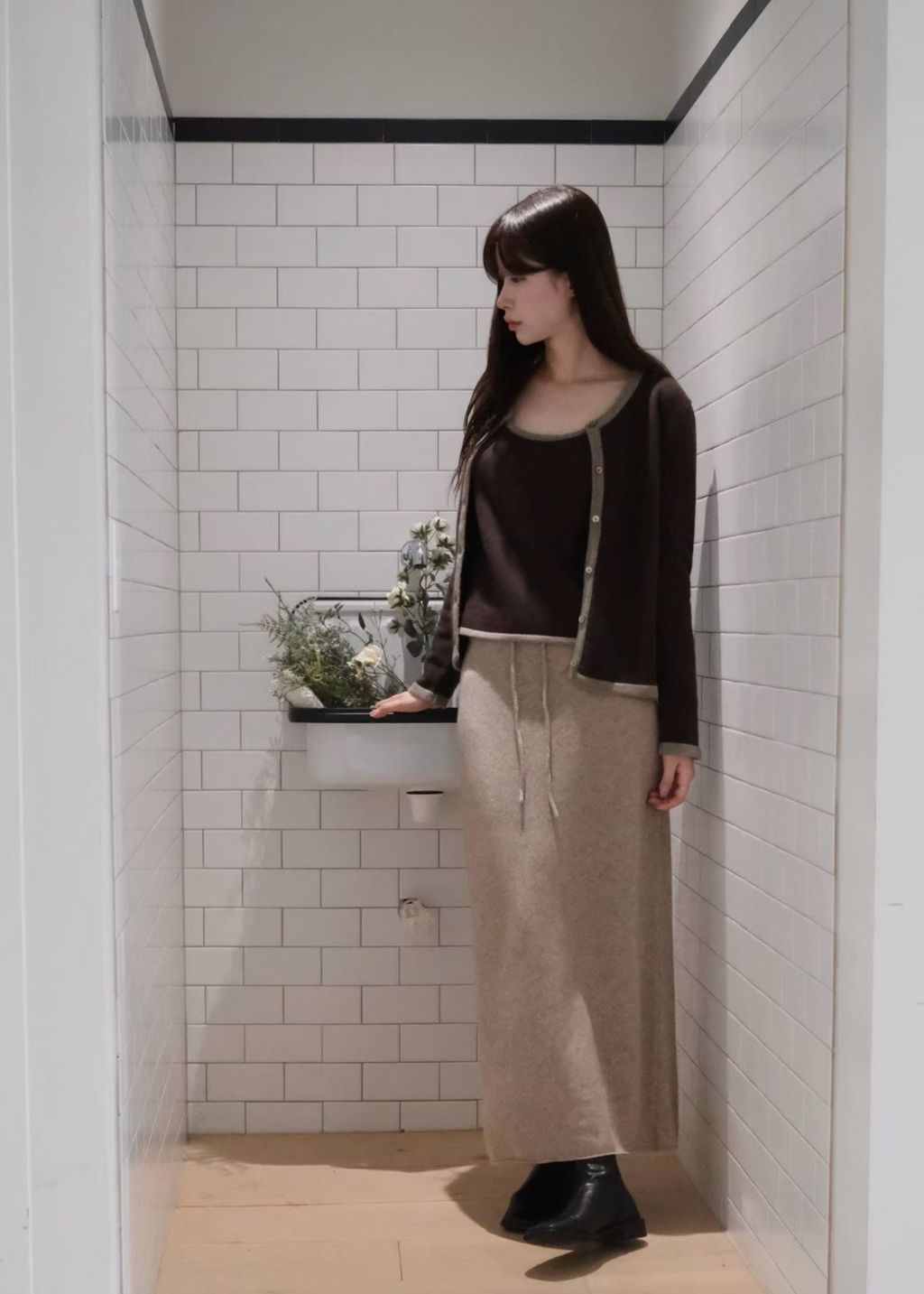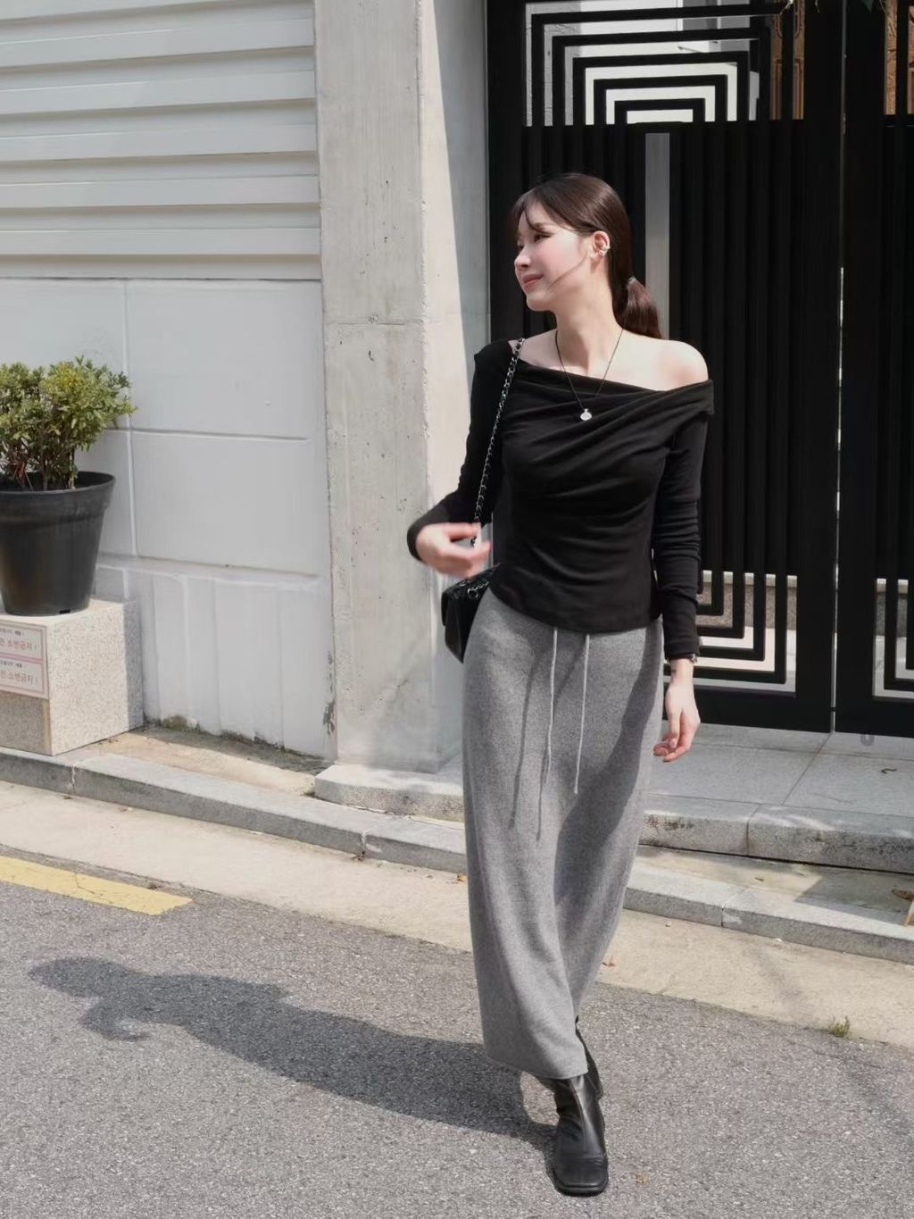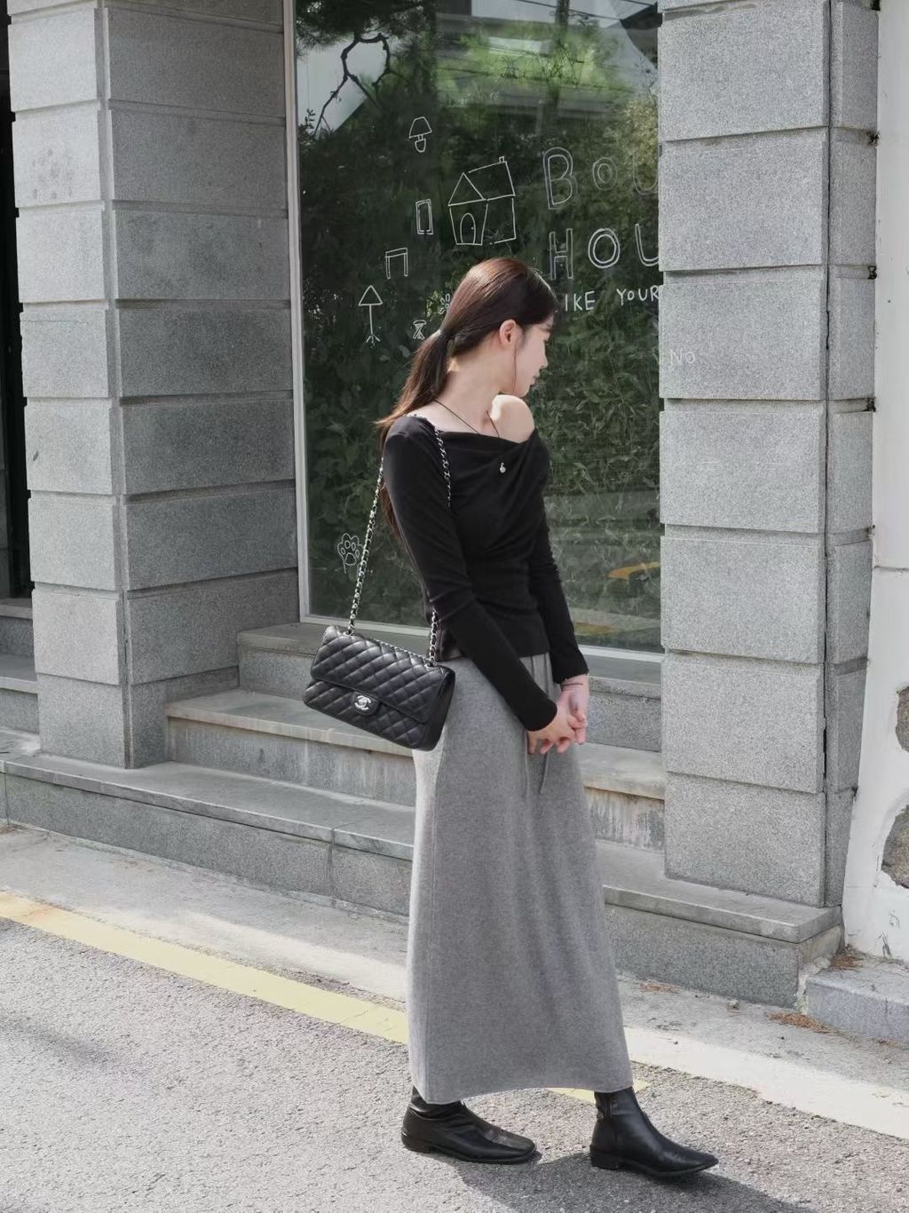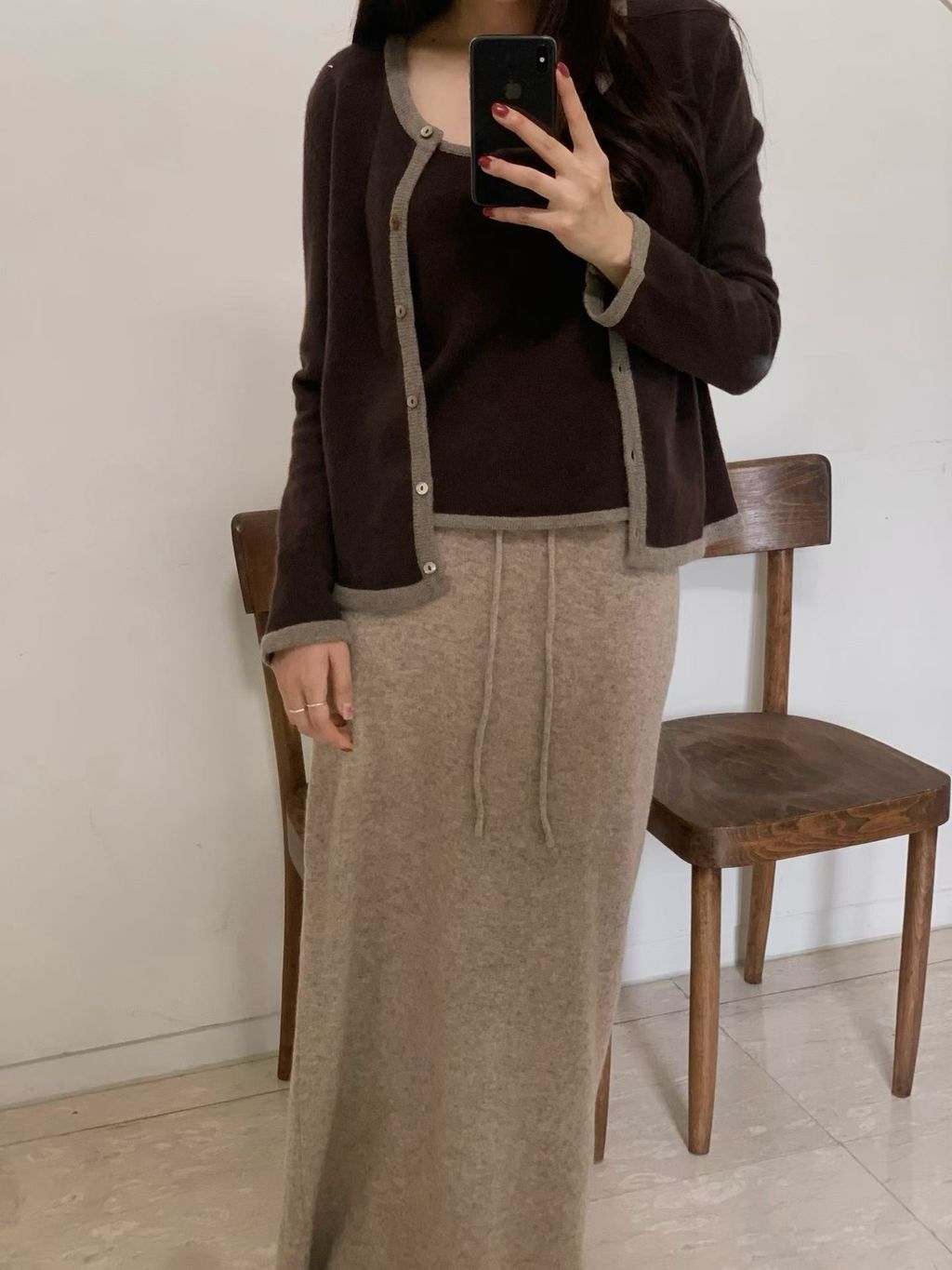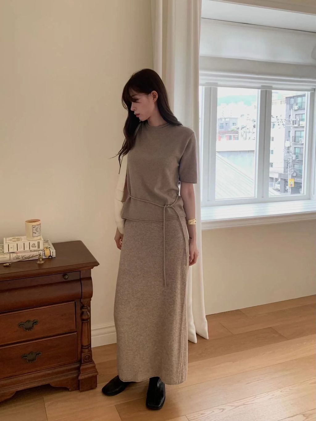 《 設計師款 》輕柔美順身綁帶羊毛裙