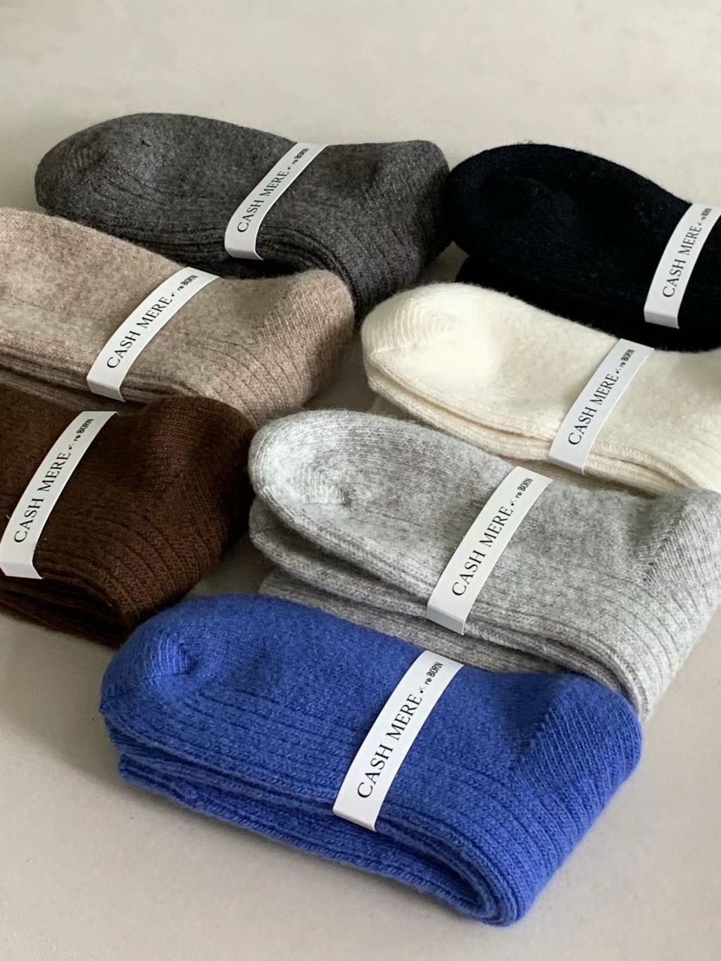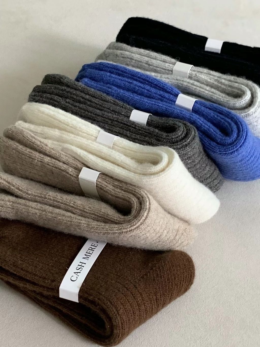 Cashmere 羊毛 粗坑條中筒襪 (7 colors)