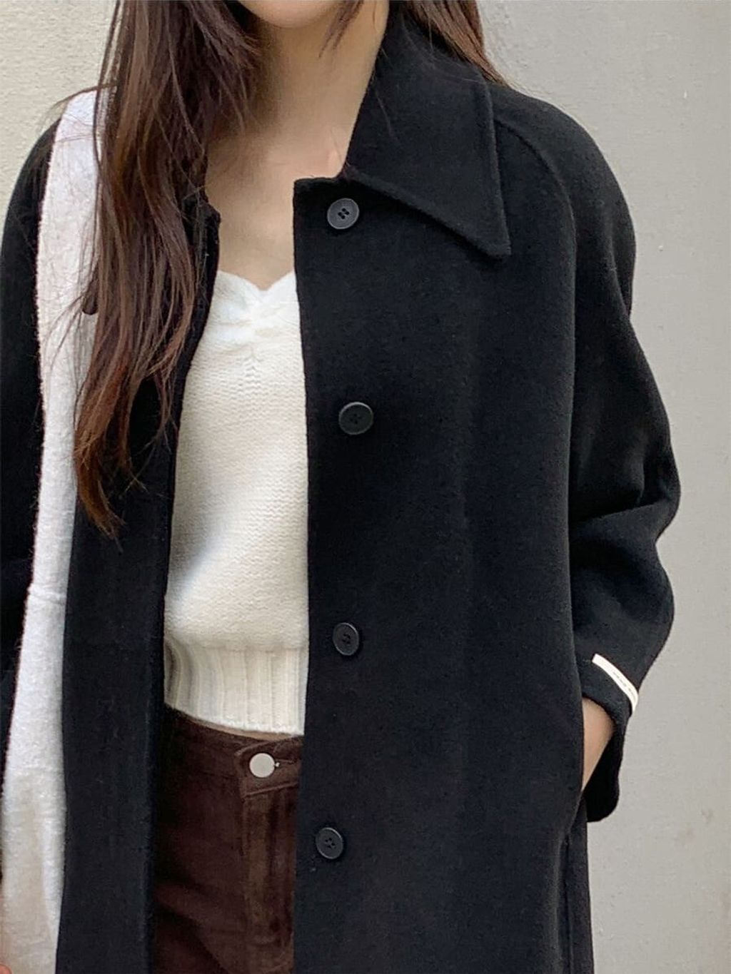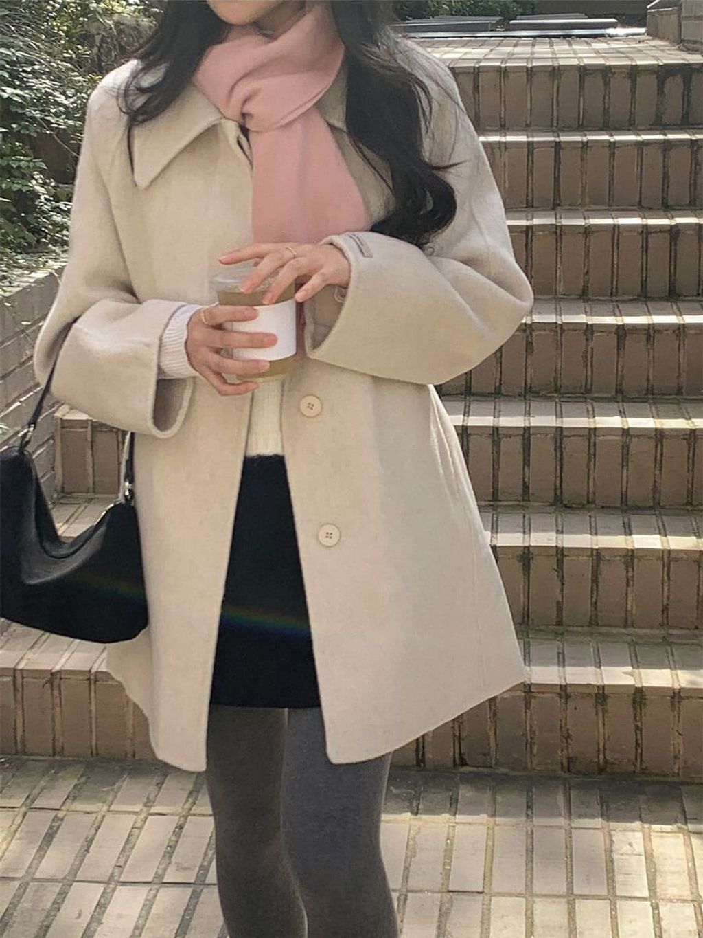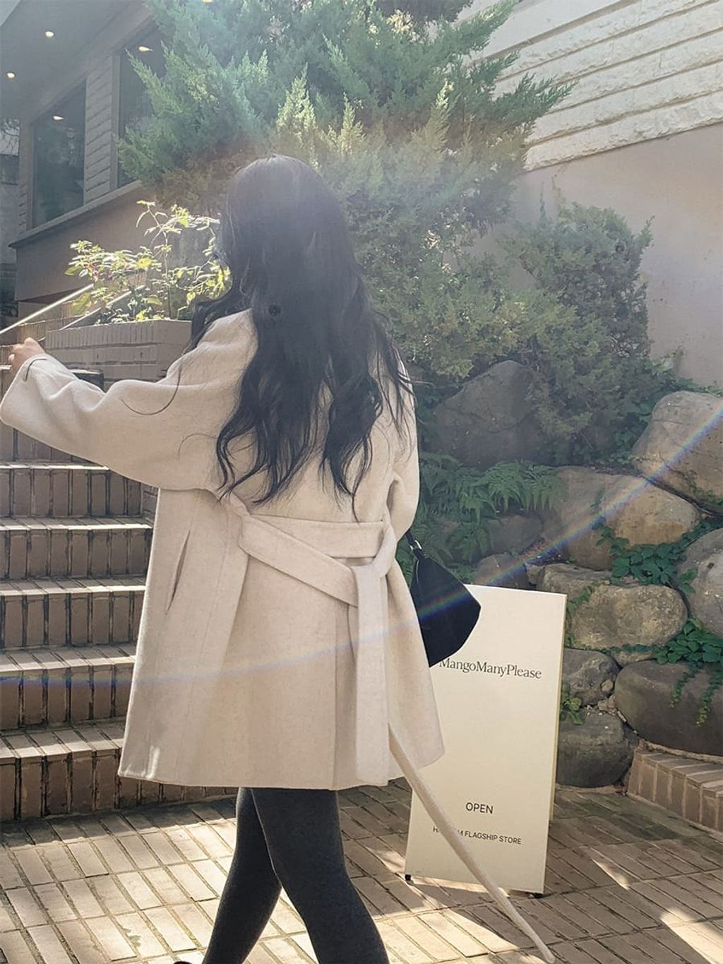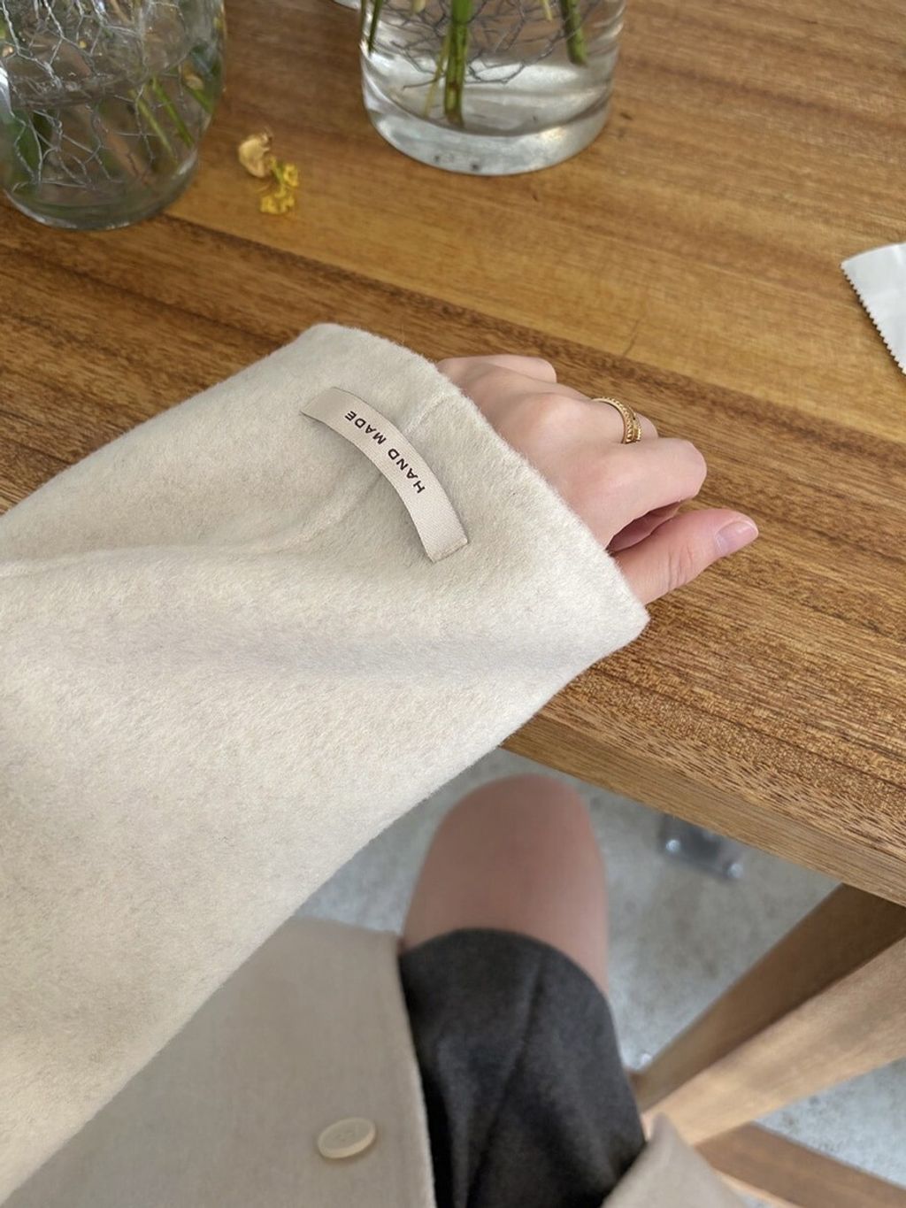 Handmade 氣質漂亮翻領排釦手工羊中長毛大衣 (Woo90%)