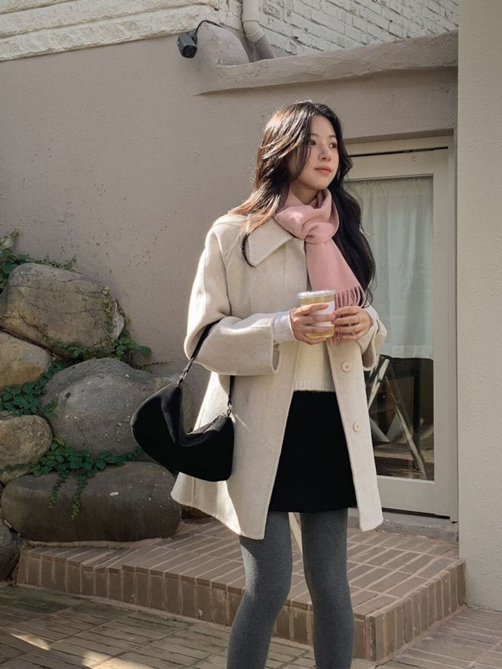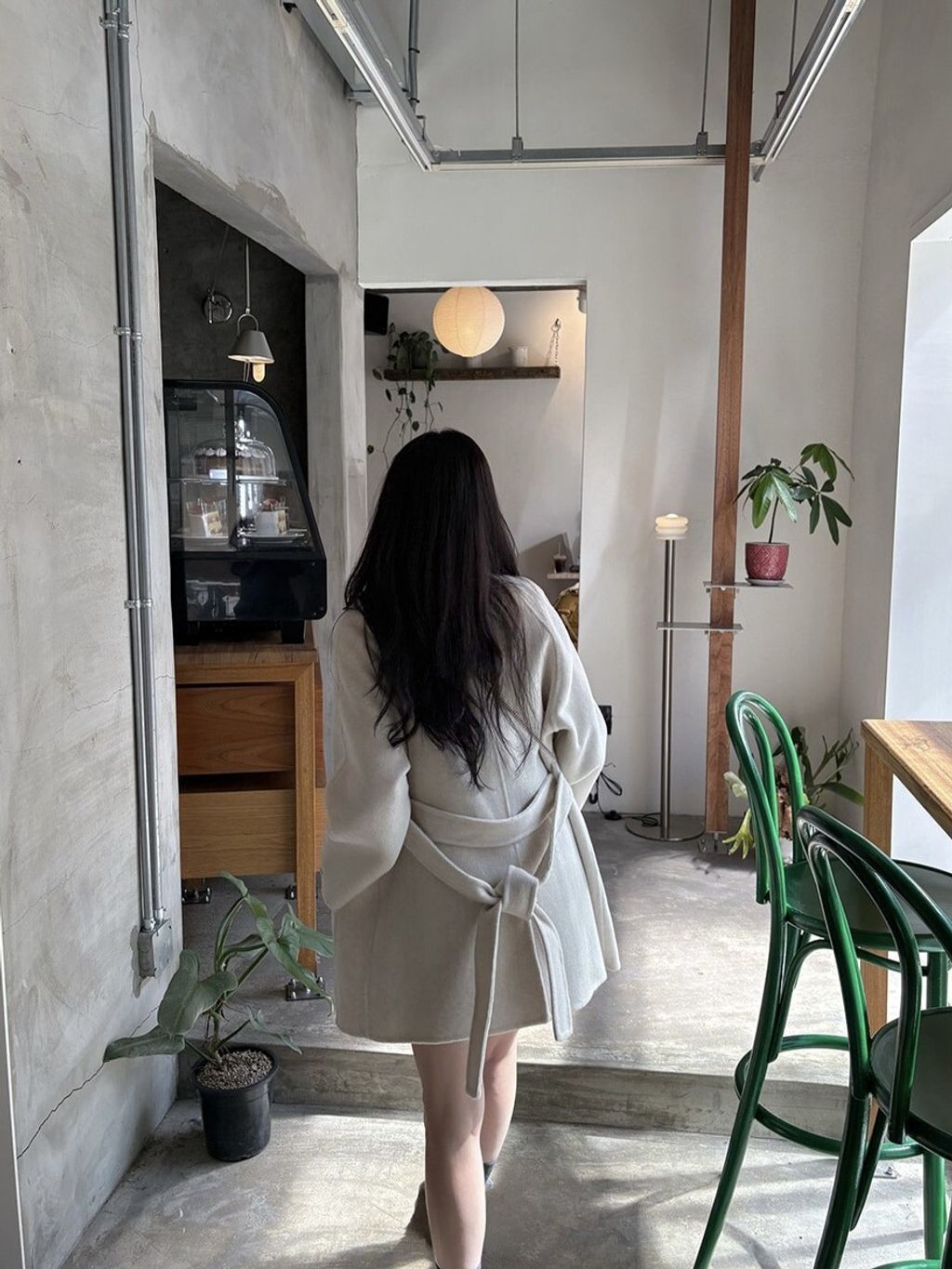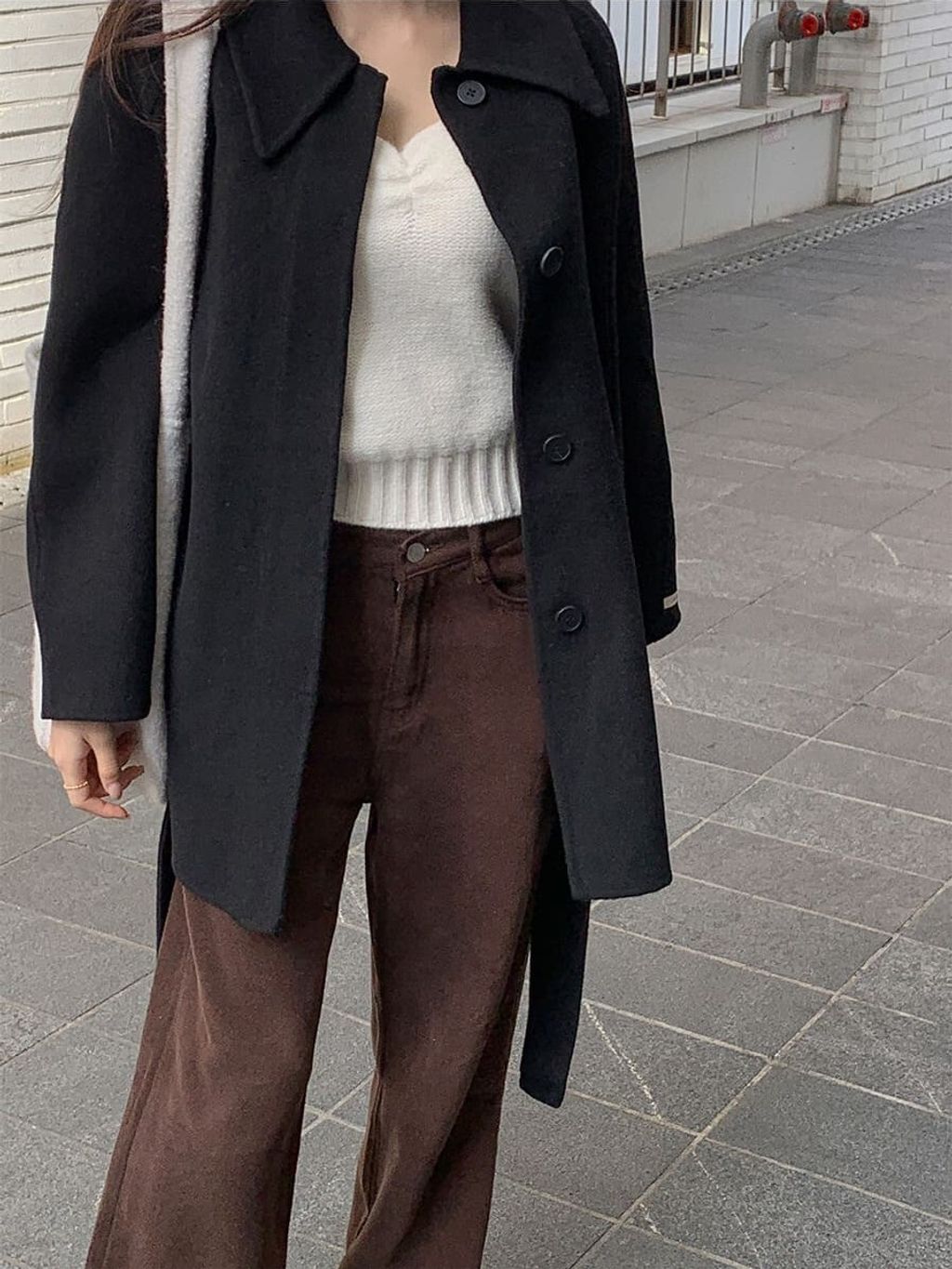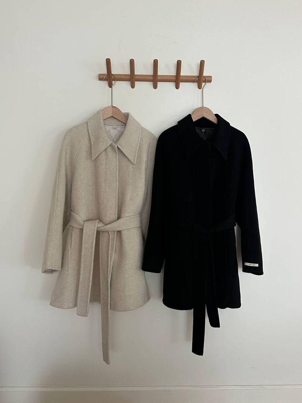 Handmade 氣質漂亮翻領排釦手工羊中長毛大衣 (Woo90%)