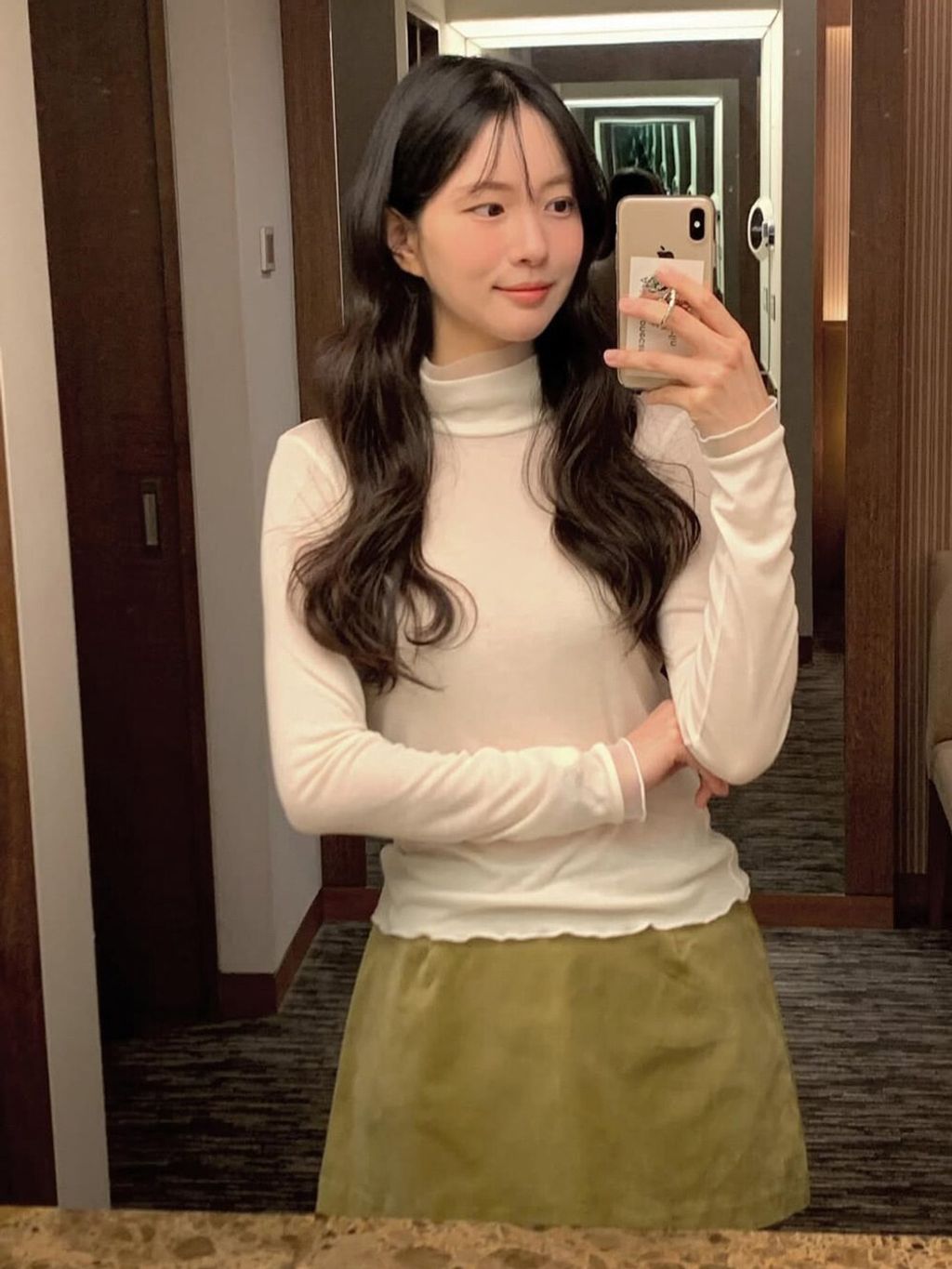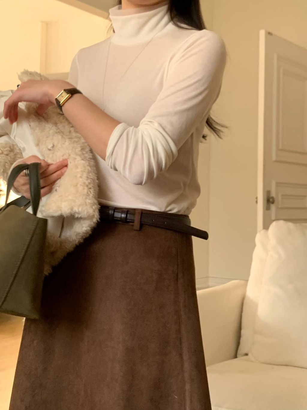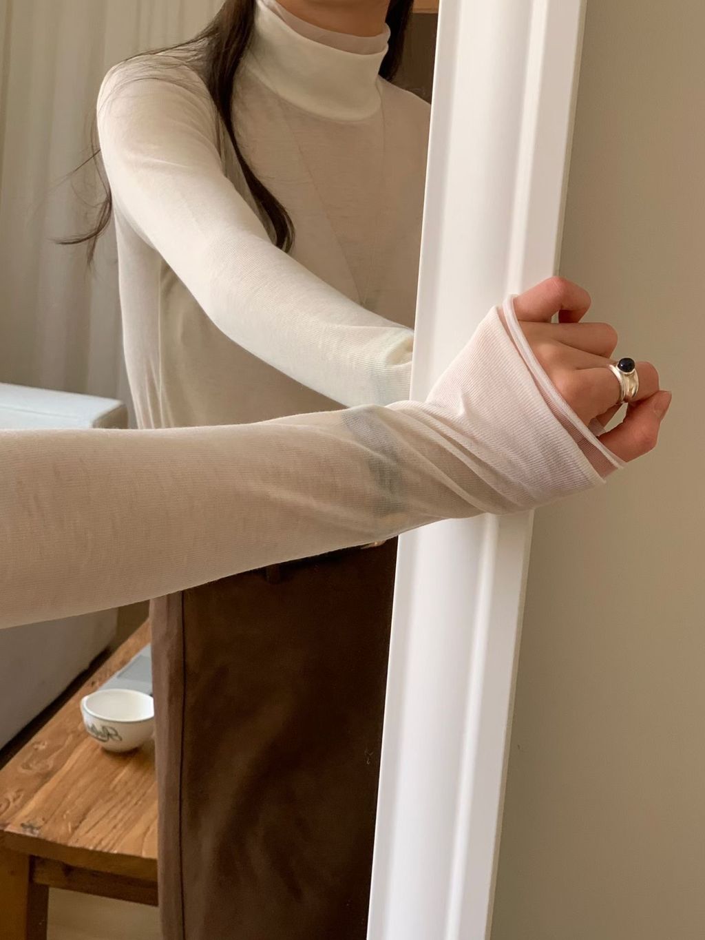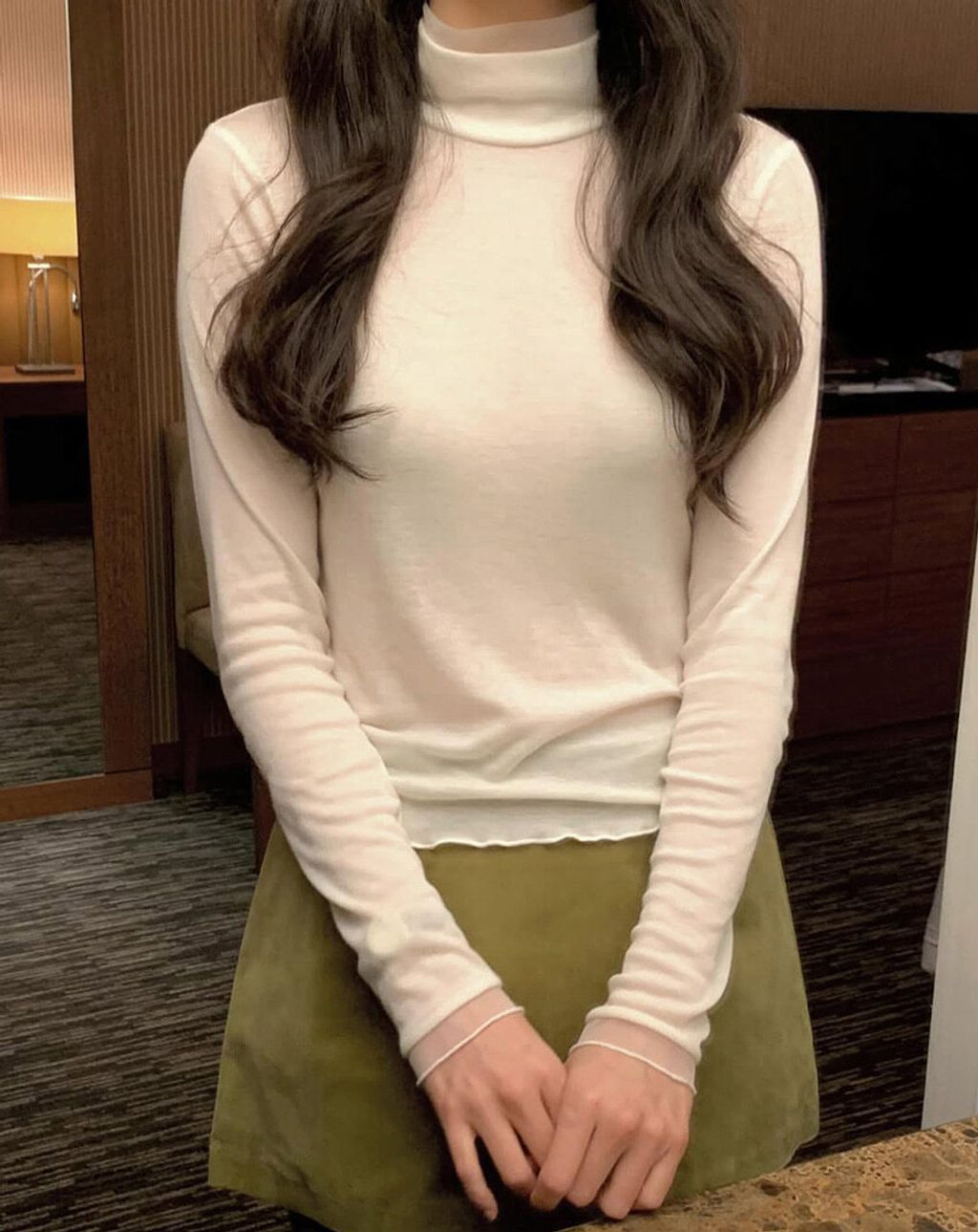 柔美透紗拼接高領天絲Tee
